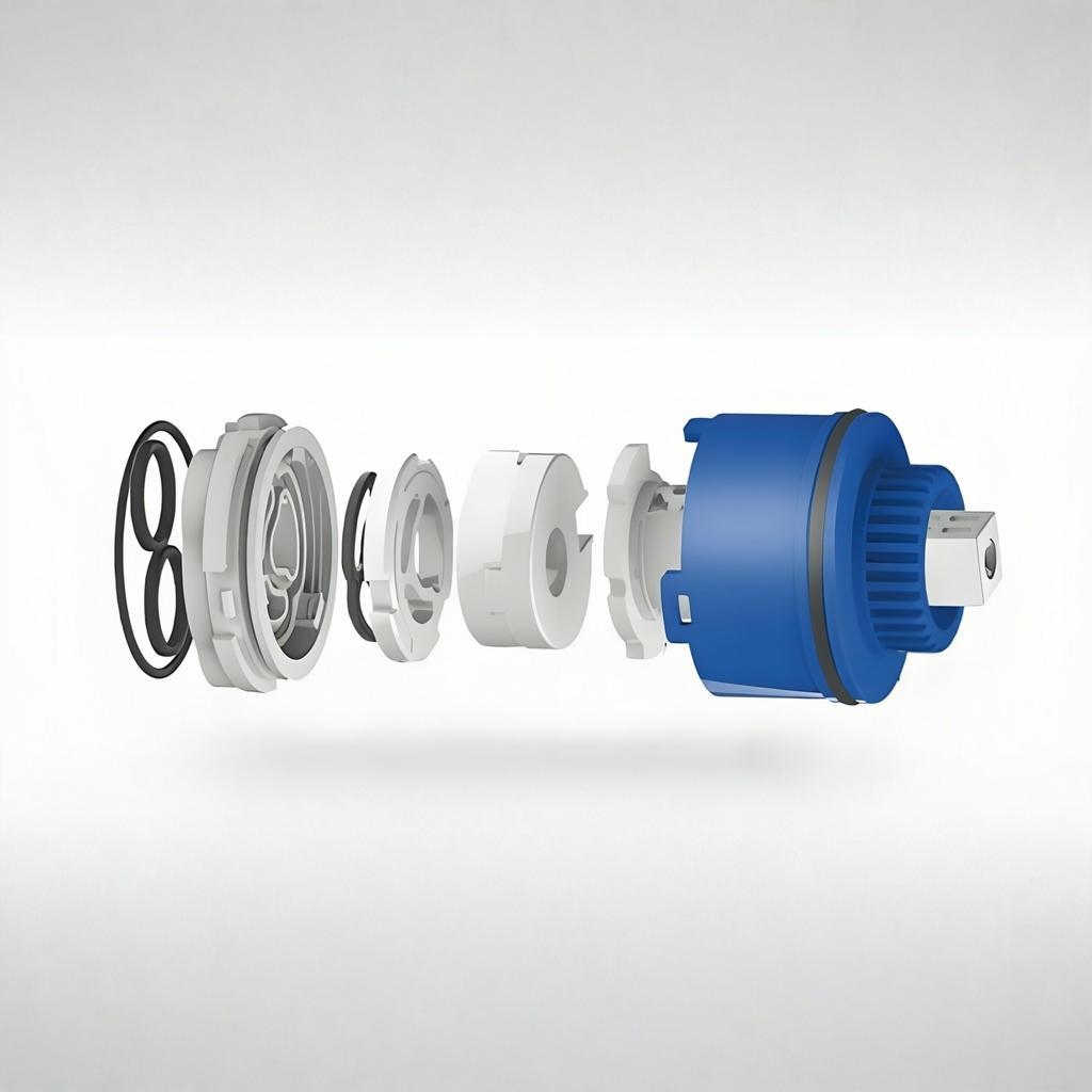- Элемент оснащен маскировочной частью, защищающей внутренние элементы при сборке, и уровнем, способствующим правильной и точной установке. Система обеспечивает легкий доступ к внутренним элементам смесителя после установки в целях технического обслуживания.