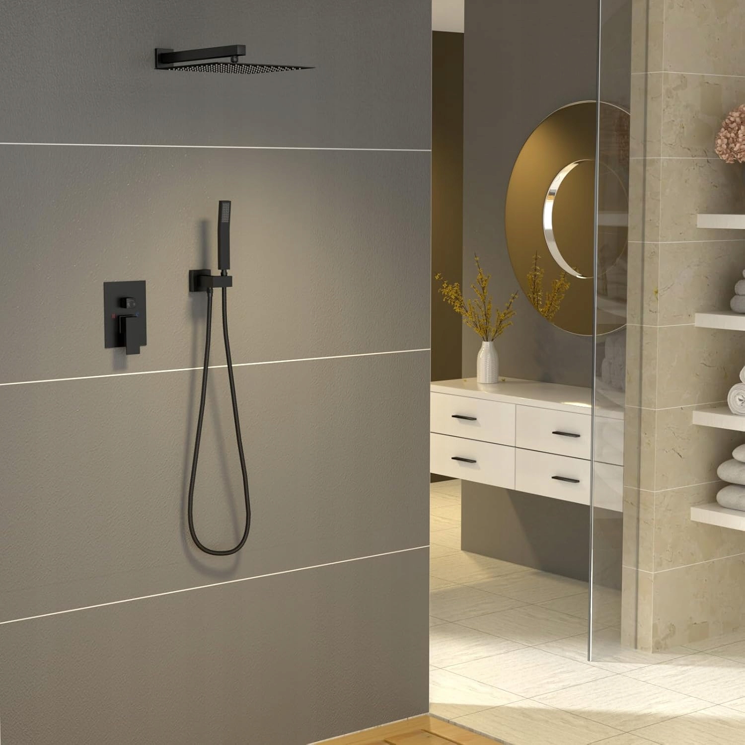 ✅Современный дизайн — минималистская форма и черная отделка идеально впишутся в современную ванную комнату.