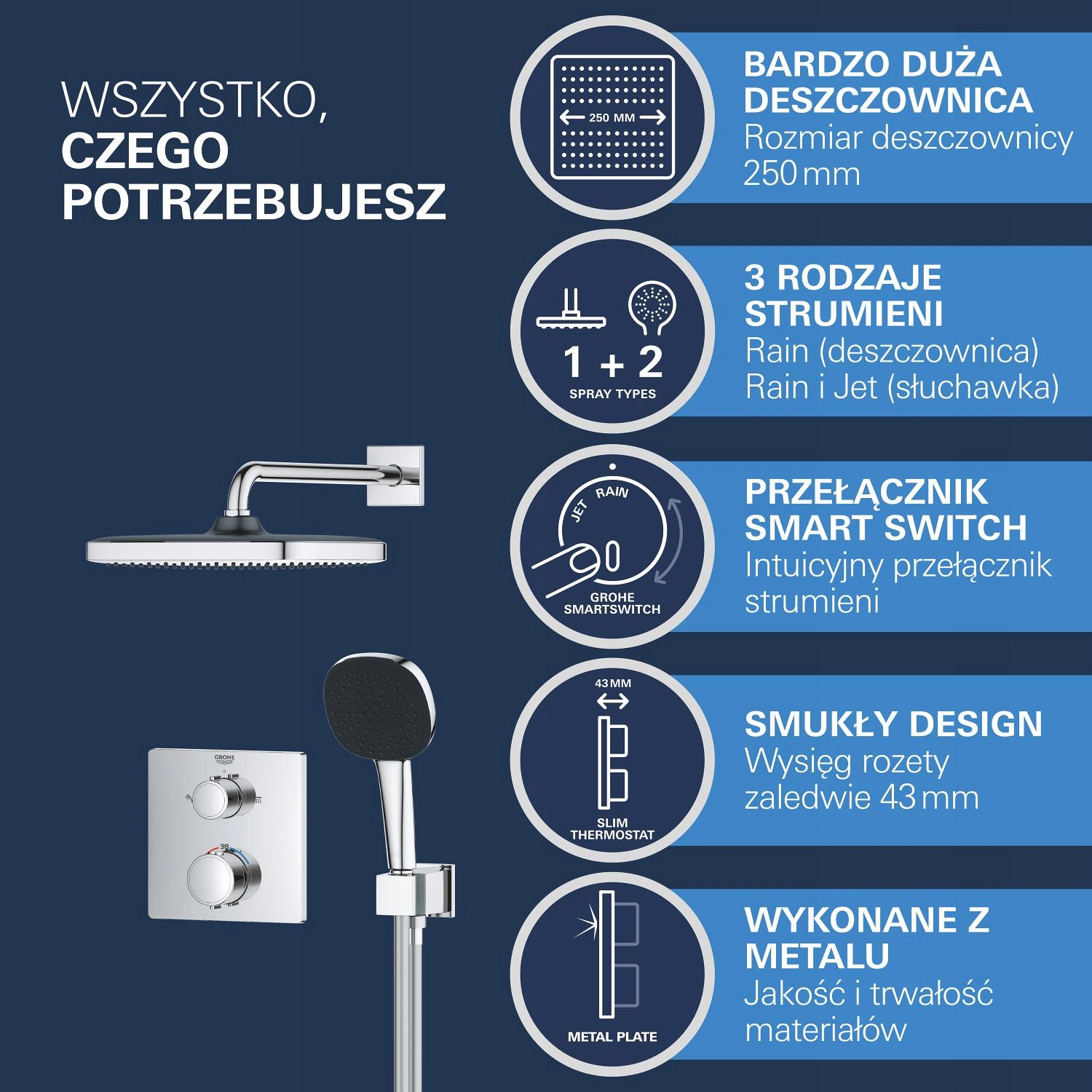 Душовий набір прихованого монтажу Grohe Vitalio Comfort, термостат, тропічний душ