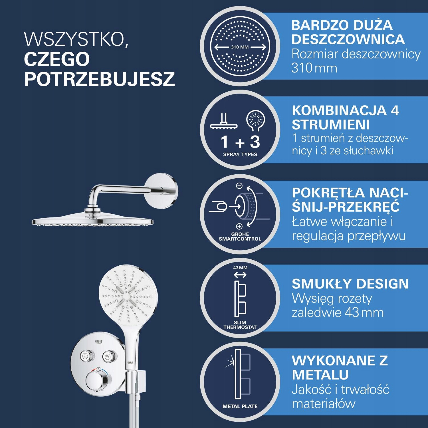 Душевой комплект скрытого монтажа GROHE Precision SmartControl с тропическим душем Vitalio Rain Mono 310