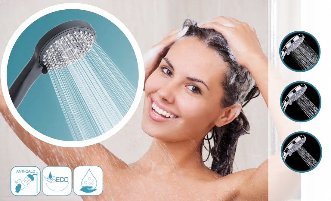 Предлагаем Вам душевой комплект с ручным душем ВОДОСБЕРЕГАЮЩИЙ 3-х диапазонный с системой ANTI CALC, цвет черный матовый