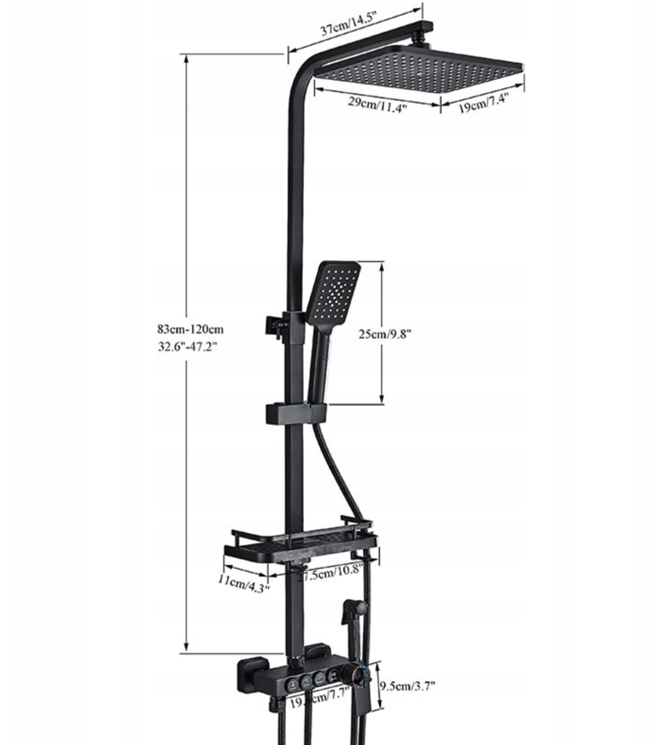 ДУШОВИЙ НАБІР ТЕРМОСТАТ БІДЕ ДОЩОВИЙ ДУШ ЧОРНИЙ ДУШ