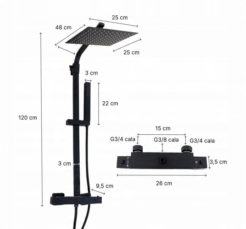 Душевая колонна с термостатическим смесителем и душевым набором - черная
