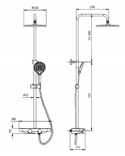 Термостатическая душевая система BS371 элегантного белого цвета убедит вас множеством функций и вариантов. В комплект системы входят душевой шланг, ручной душ и тропический душ.