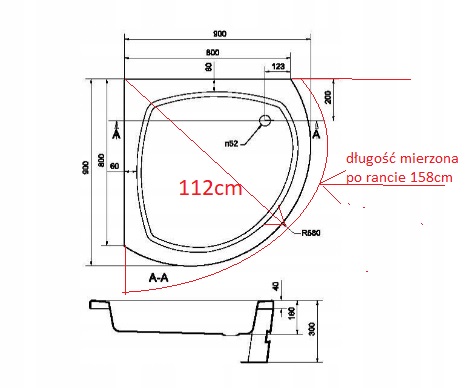 Душевой поддон Cersanit с радиусом (круглый сегмент) R-580