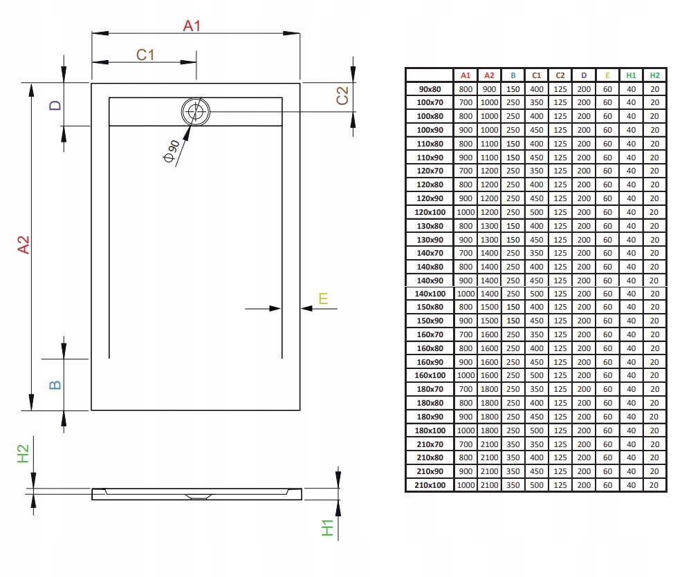- Отверстие для сифона 90 мм