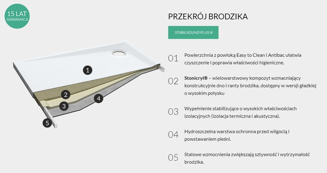 Технология Stabilsound Plus ® обеспечивает высокую устойчивость душевых поддонов к давлению - до 1500 кг!