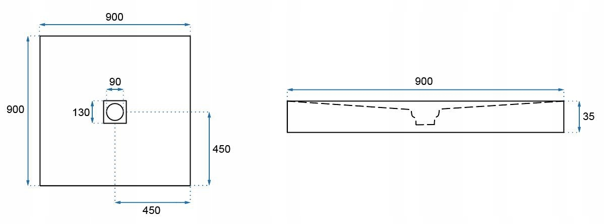 - Расположение слива: На более короткой стороне