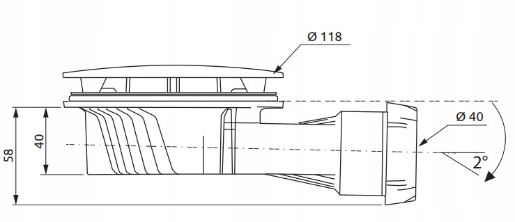 - диаметр сливной трубы Ø 40 мм