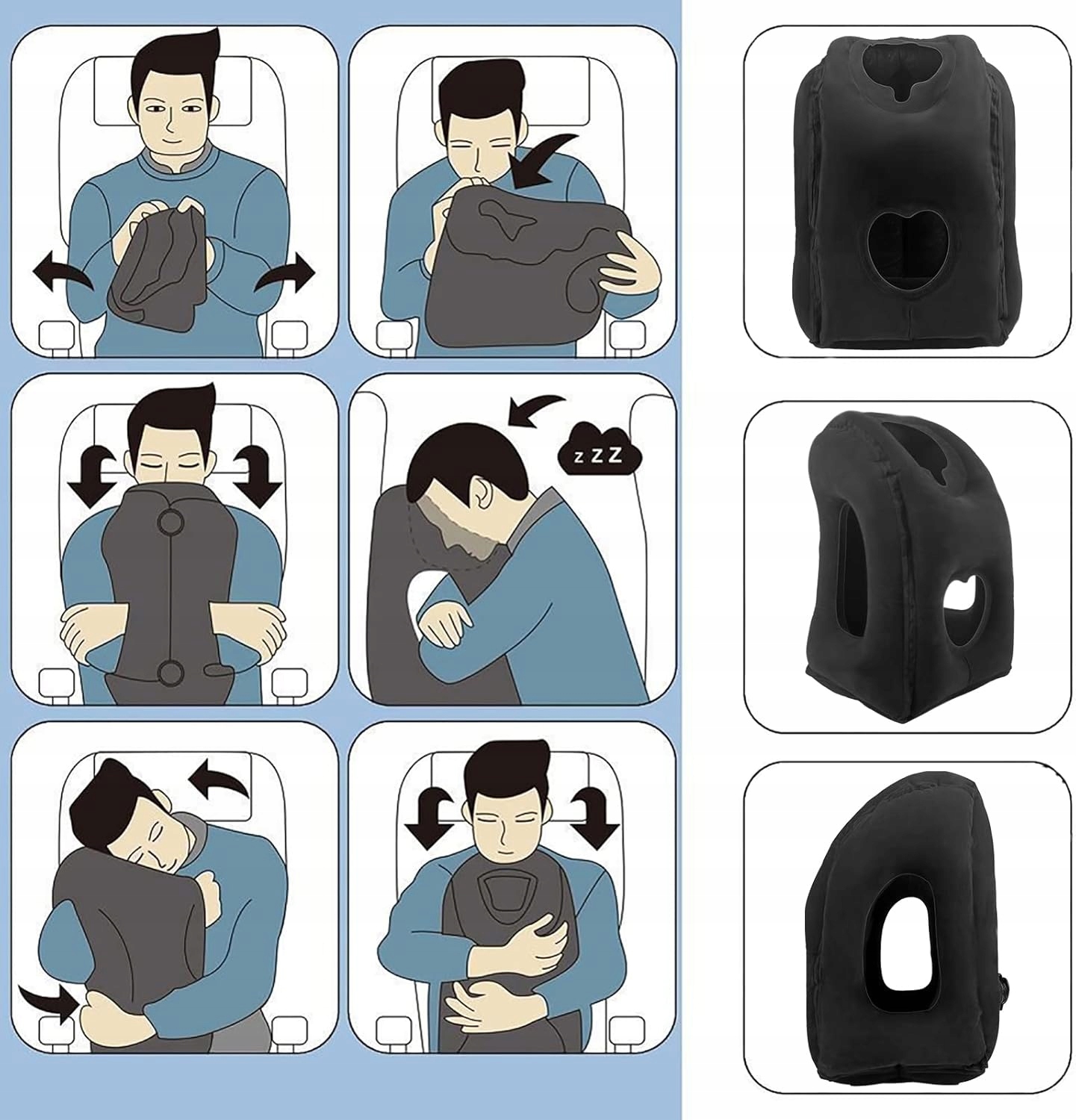 НАДУВАННАЯ ПОДУШКА С ОТВЕРСТИЯМИ ДЛЯ ЛИЦА, НАДУВАННАЯ ПОДУШКА ДЛЯ САМОЛЕТА