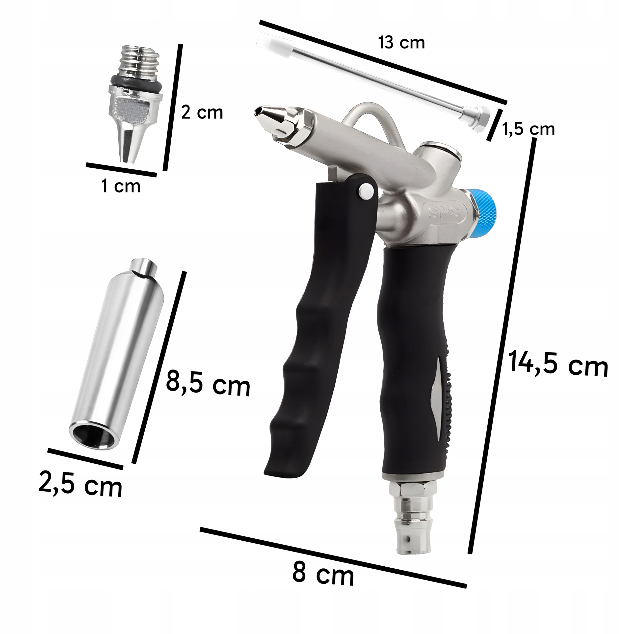 ✍️ Пистолет для обдува☺️ Изготовлен из металла☀️ Прочный и устойчивый к механическим повреждениям✏️ Надежное качество изготовления ✉️ Проверенная конструкция♠️ Оснащен регулятором расхода воздуха ♣️ Оснащен 3 форсунками Вентури, точечным и длина: 110 мм ⭐
