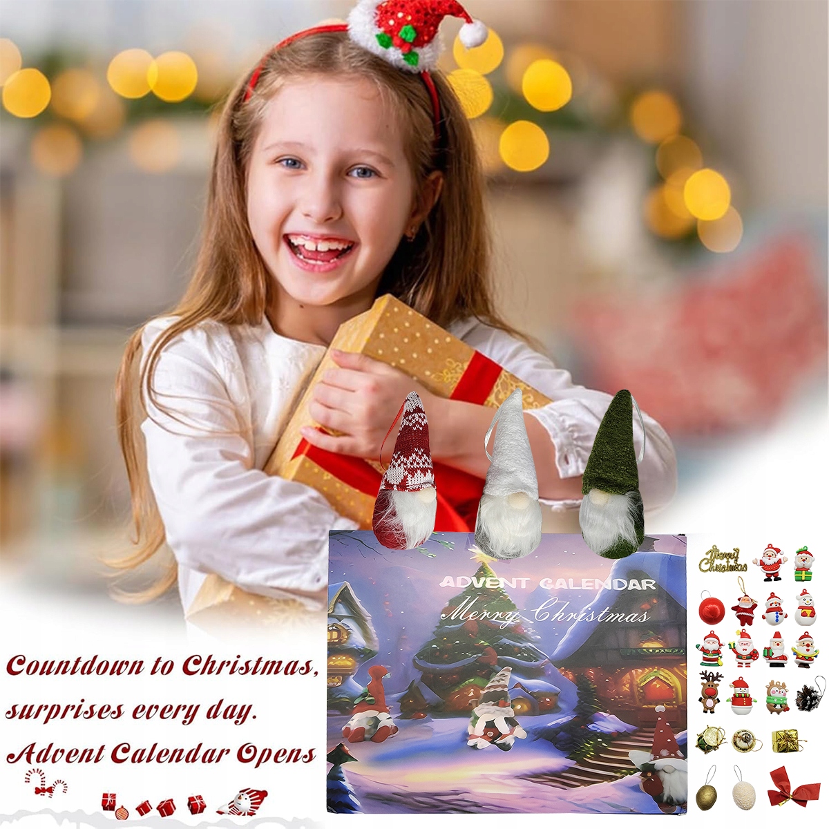 DUŻY GNOME Kalendarz adwentowy zabawki BRELOKI zawieszki bombki święteczne