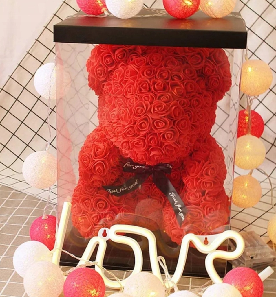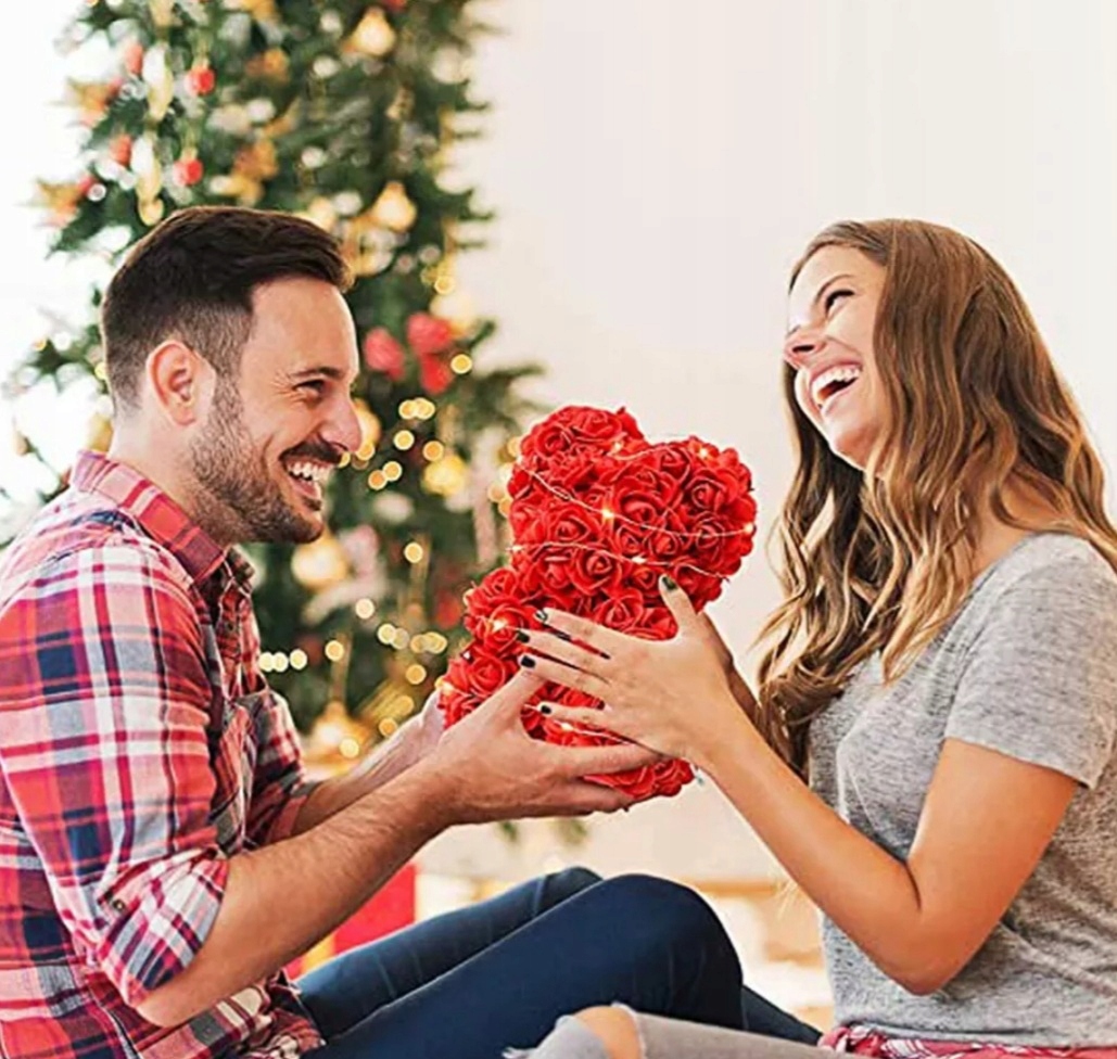 DUŻY MIŚ Z RÓŻ WALENTYNKI PREZENT PUDEŁKO + ŚWIATEŁKA LED GRATIS!