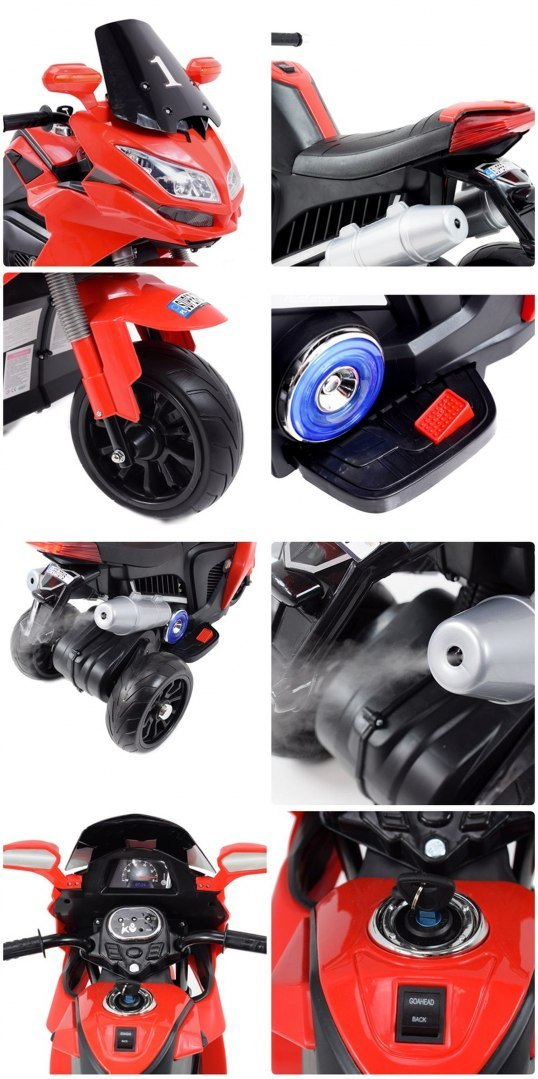 Новейшая разработка одного из лучших заводов по производству транспортных средств. Очень хорошее качество продукции, колеса EVA, обеспечивающие тихую езду, запуск с ключа и имитация выхлопа делают его одним из самых привлекательных мотоциклов в нашем предложении. Дополнительным аттракционом является звуковая панель с песнями и рассказами. Также имеется вход AUX - возможность подключения внешнего устройства.