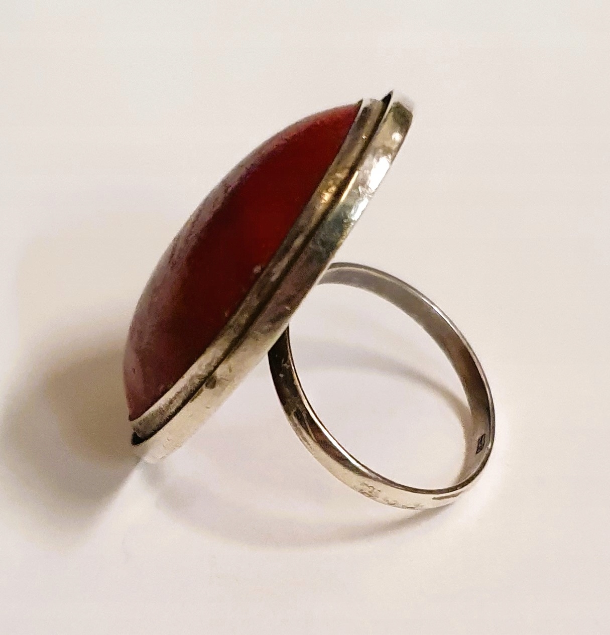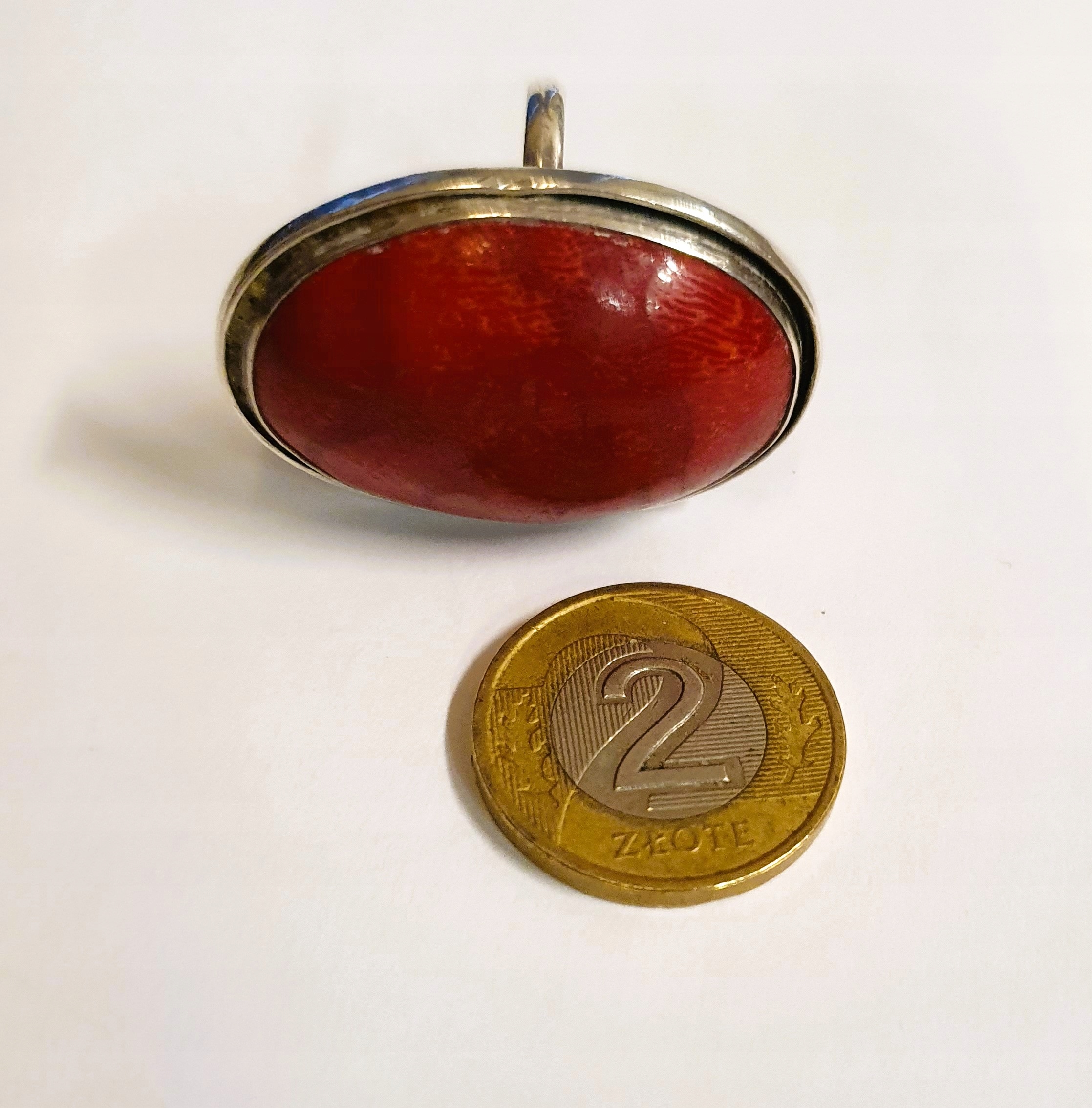 duży pierścionek srebrny pr 925 wisiorek komplet koral