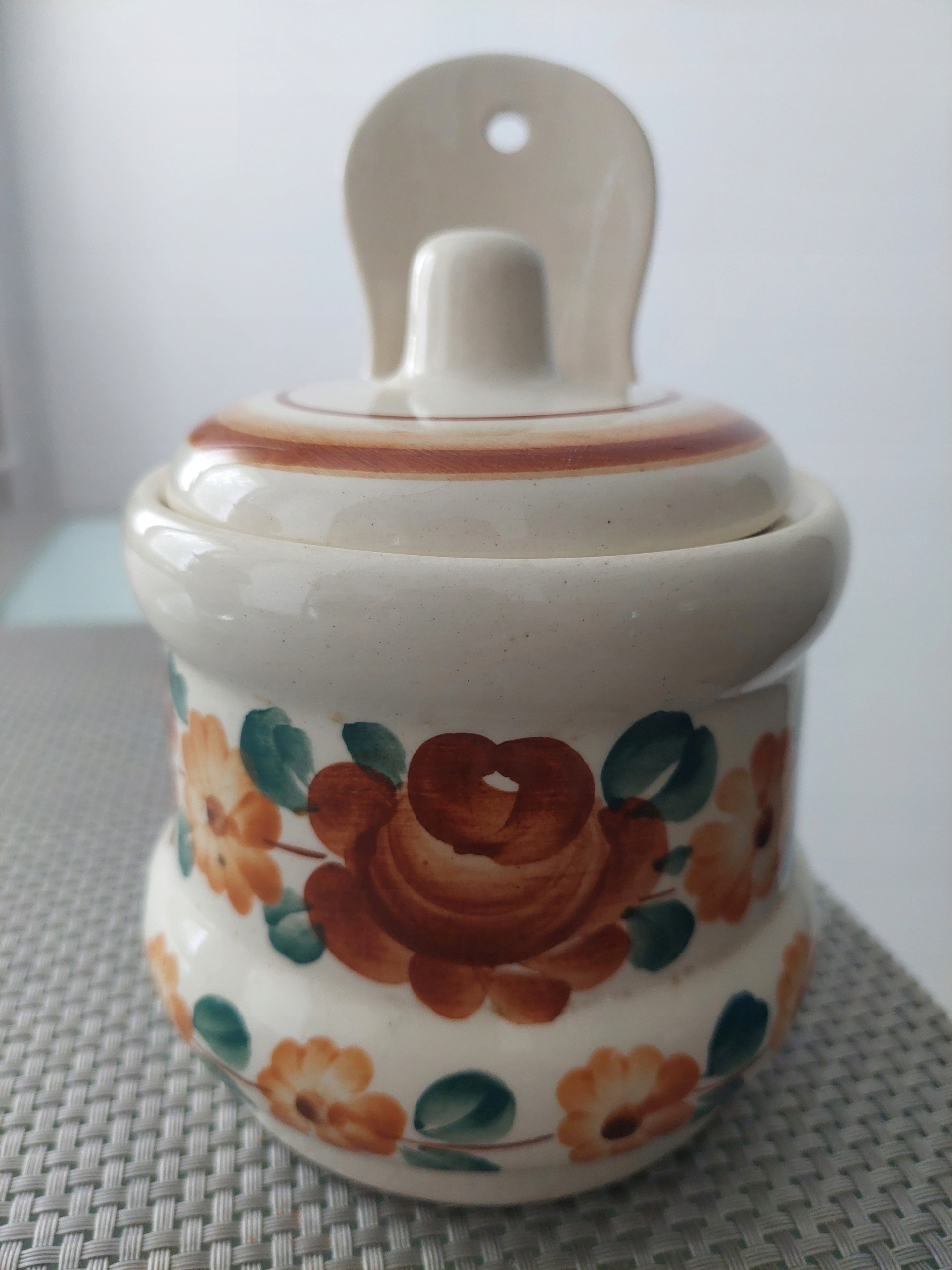 Duży pojemnik kuchenny Włocławek ręcznie malowany D. Zakrzewska Fajans PRL