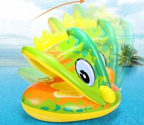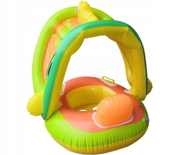 DUŻY PONTON DLA DZIECI Z DASZKIEM ODPINANYM I SIEDZISKIEM 2W1 MOTYW KACZKI
