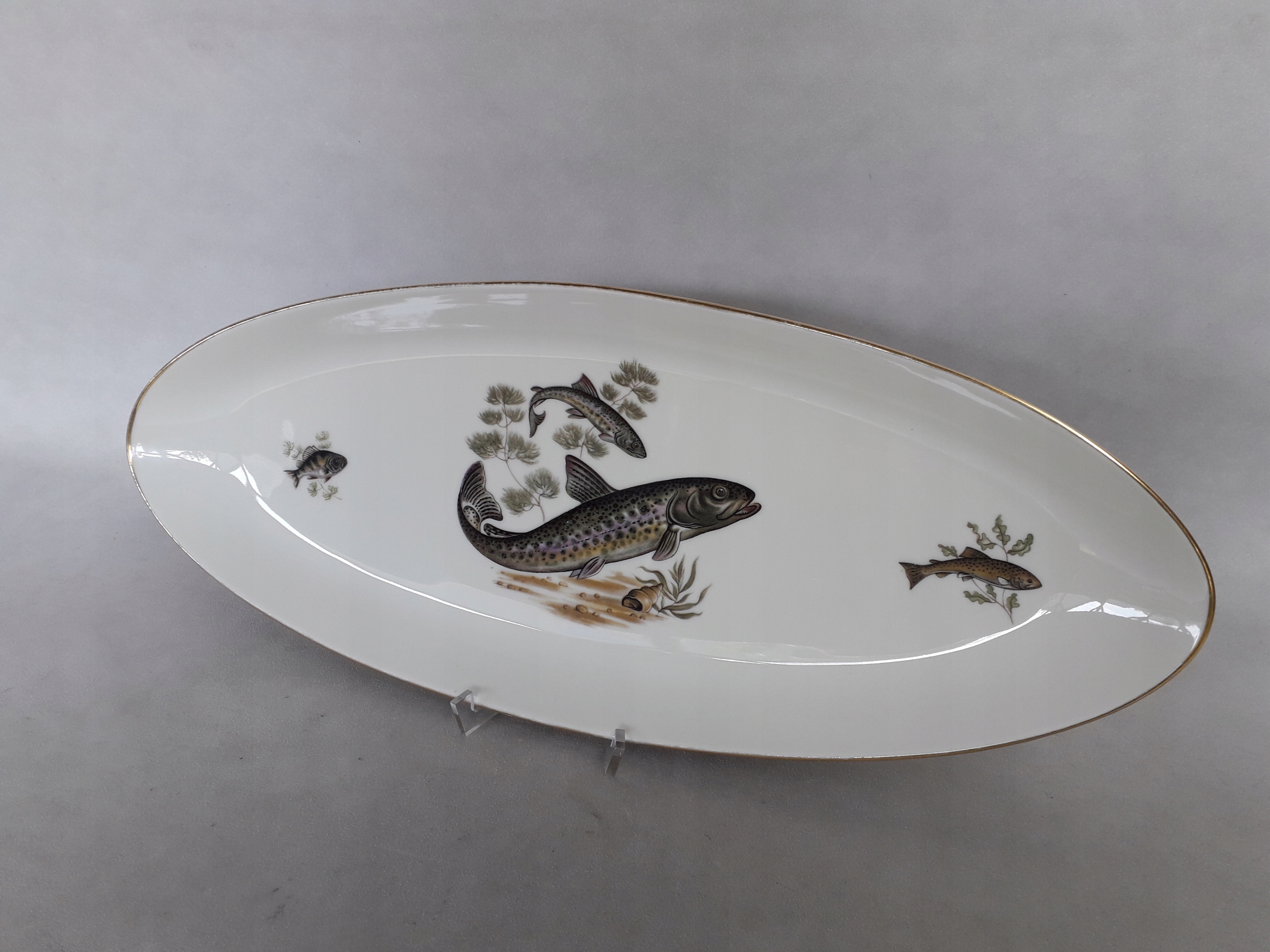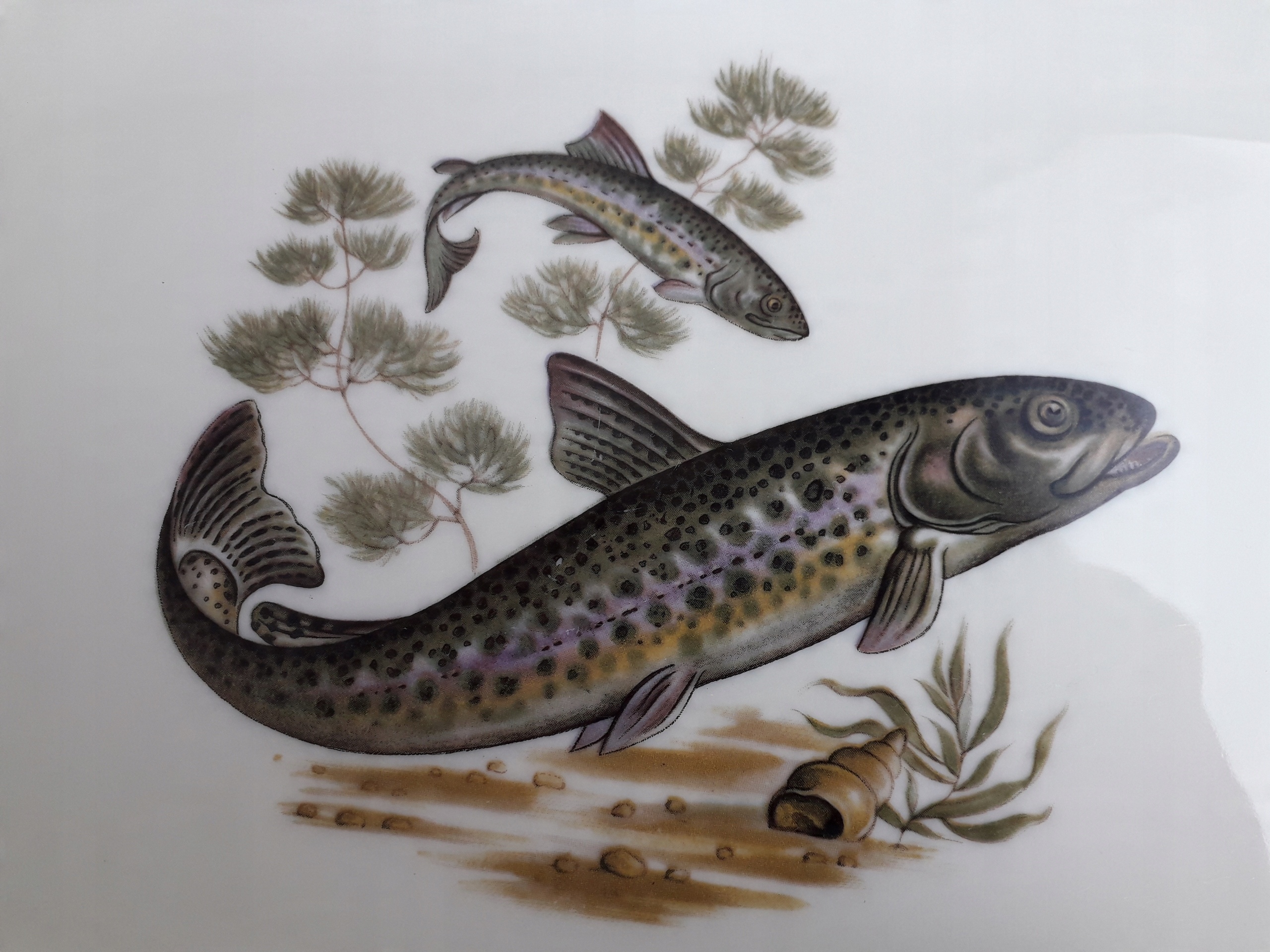 DUŻY PORCELANOWY PÓŁMISEK - PATERA -PSTRĄG