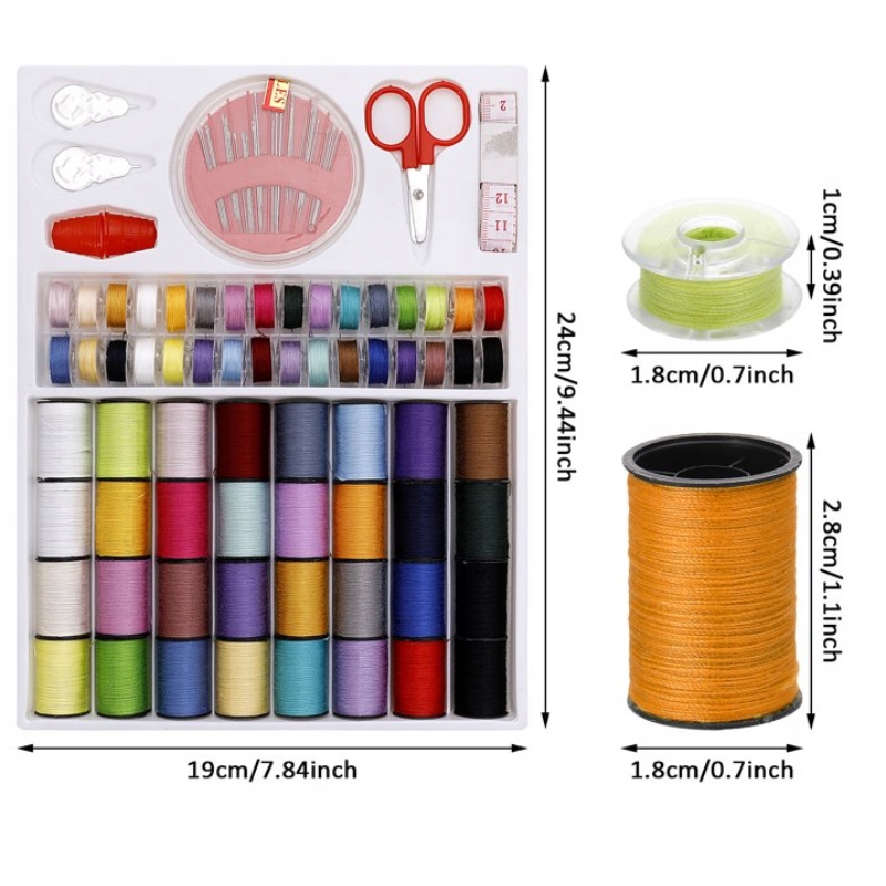 Кроме того, в наш комплект входят 32 большие и 32 маленькие катушки ниток разных цветов, коробочка с иглами разных размеров, 2 наперстка, 1 сантиметр, 1 ножницы, 1 нитевдеватель и 1 вспарыватель - все, что вам нужно, чтобы сделать ваши швейные проекты еще проще и приятнее.