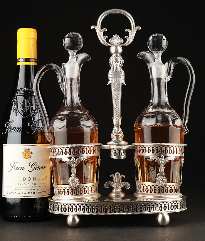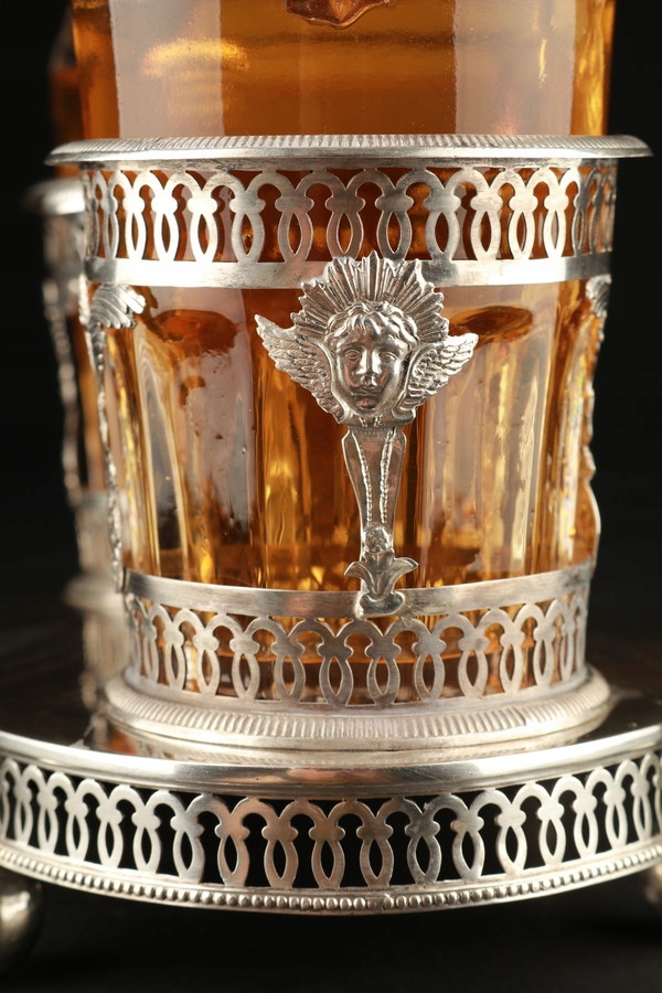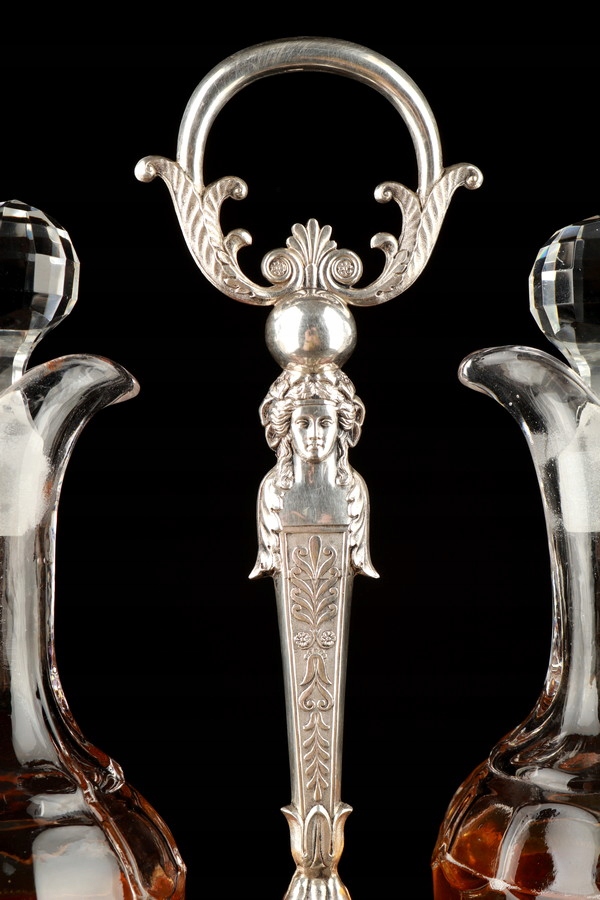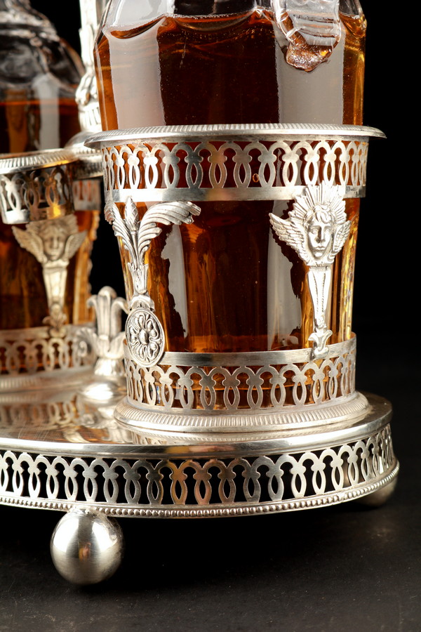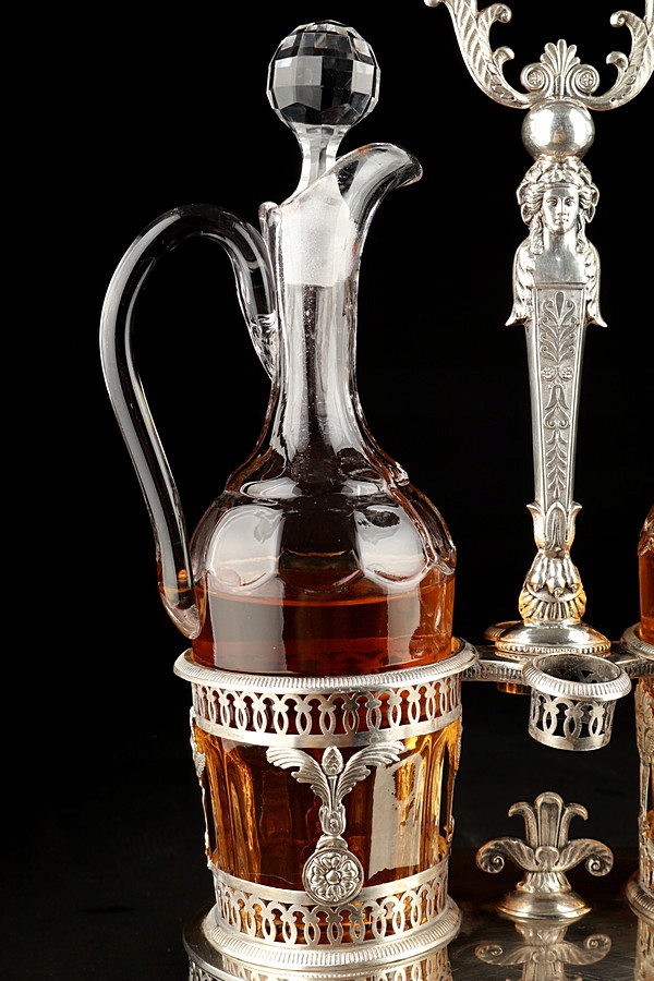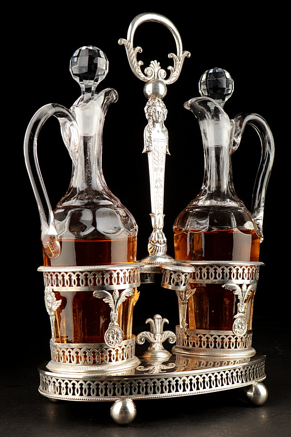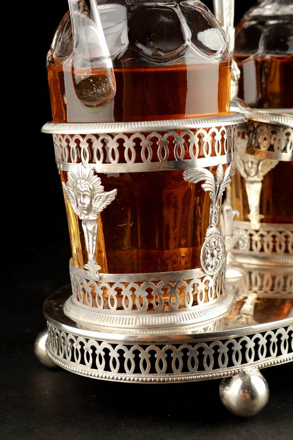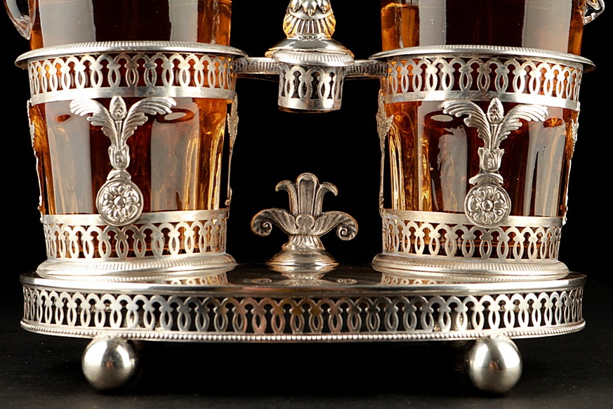 Duży srebrny kabaret na przyprawy, ocet - oliwa