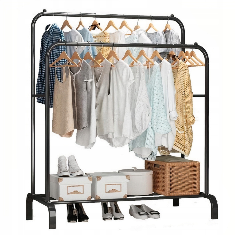 DUŻY WIESZAK NA UBRANIA BUTY STOJĄCY PODWÓJNY STOJAK METALOWY CZARNY MOCNY