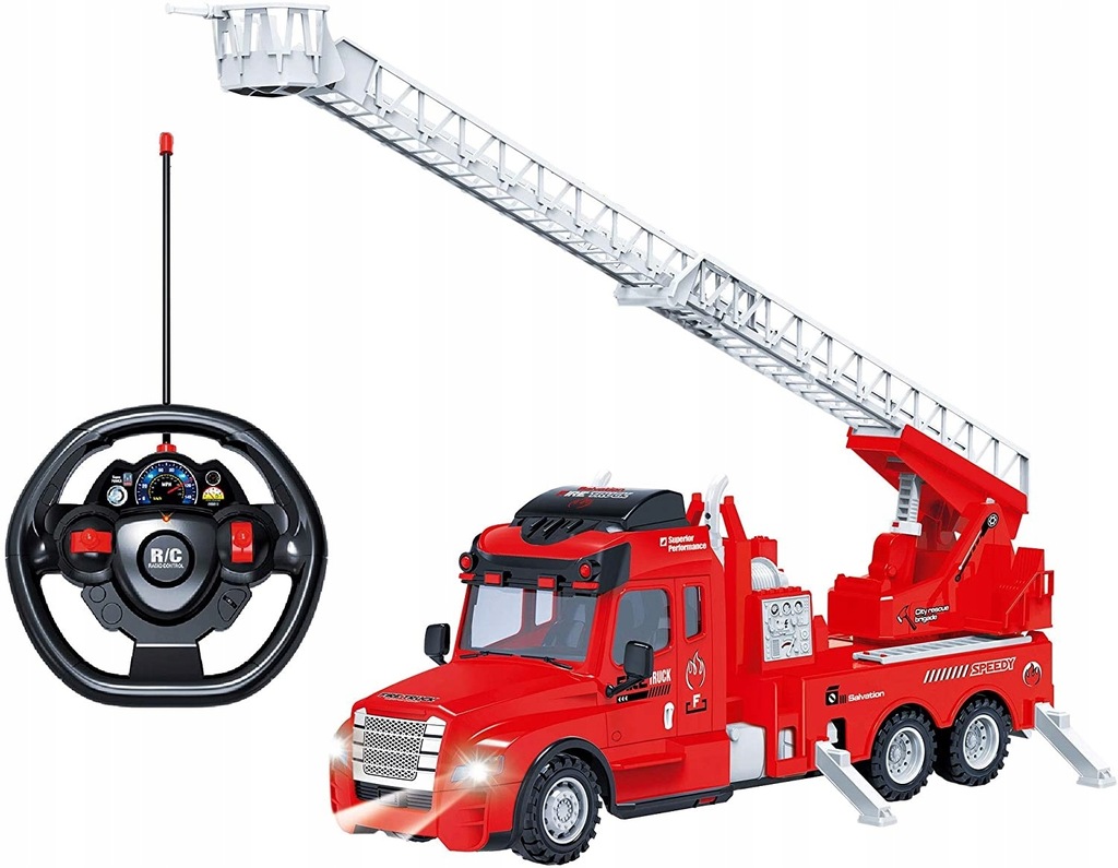 DUŻY WÓZ STRAŻACKI STRAŻ POŻARNA ZDALNIE STEROWANA Z DRABINĄ PILOT !