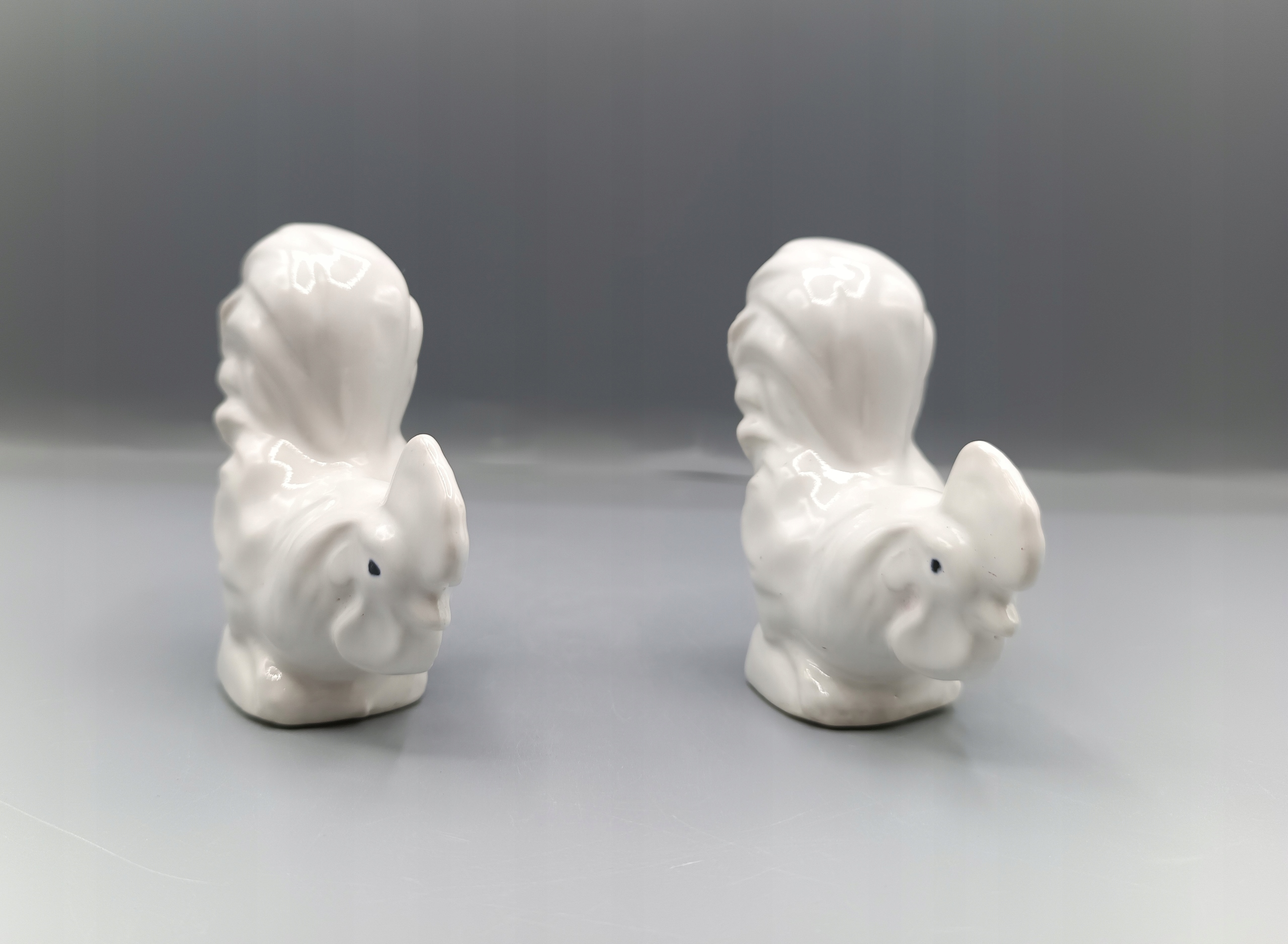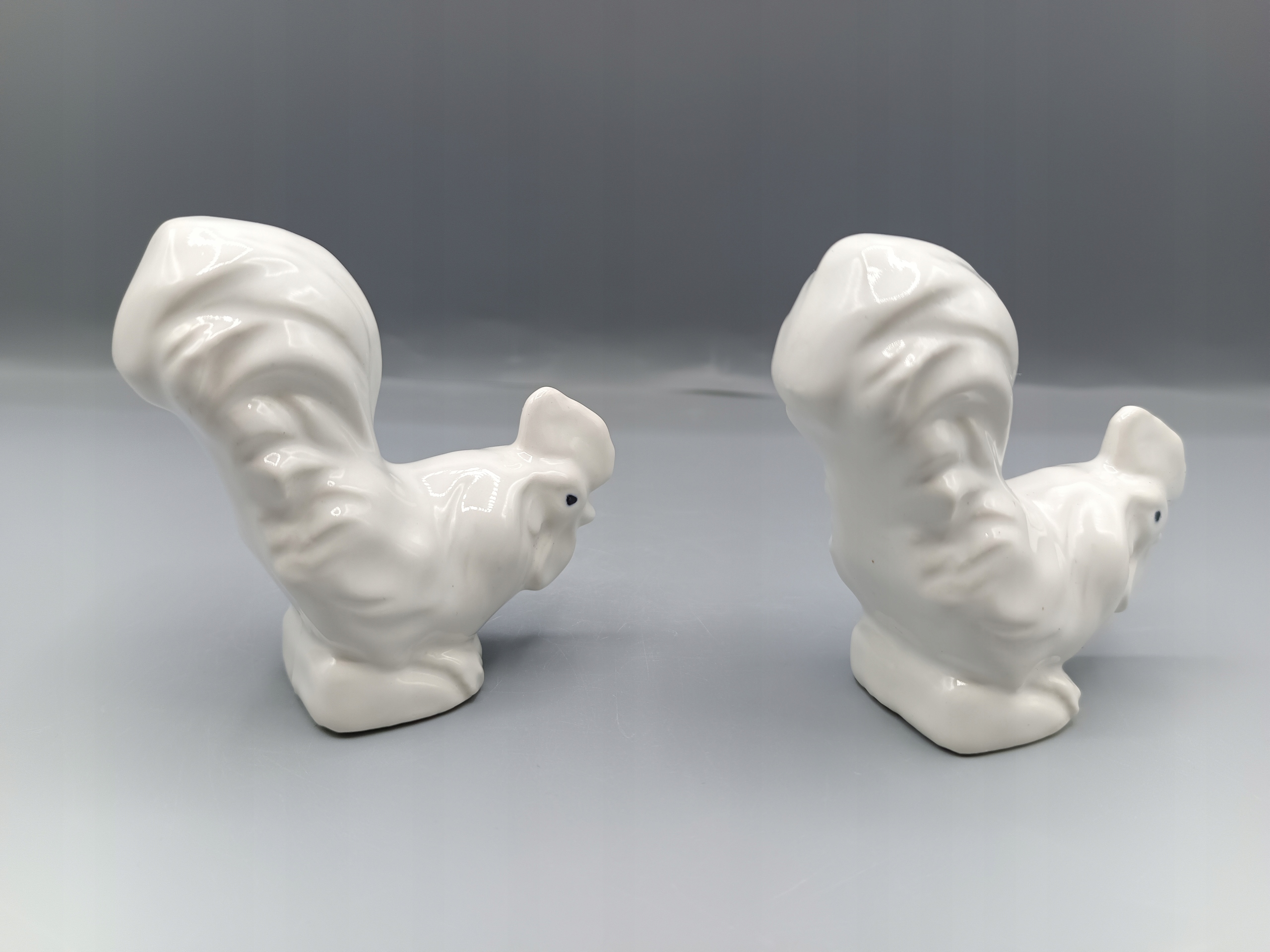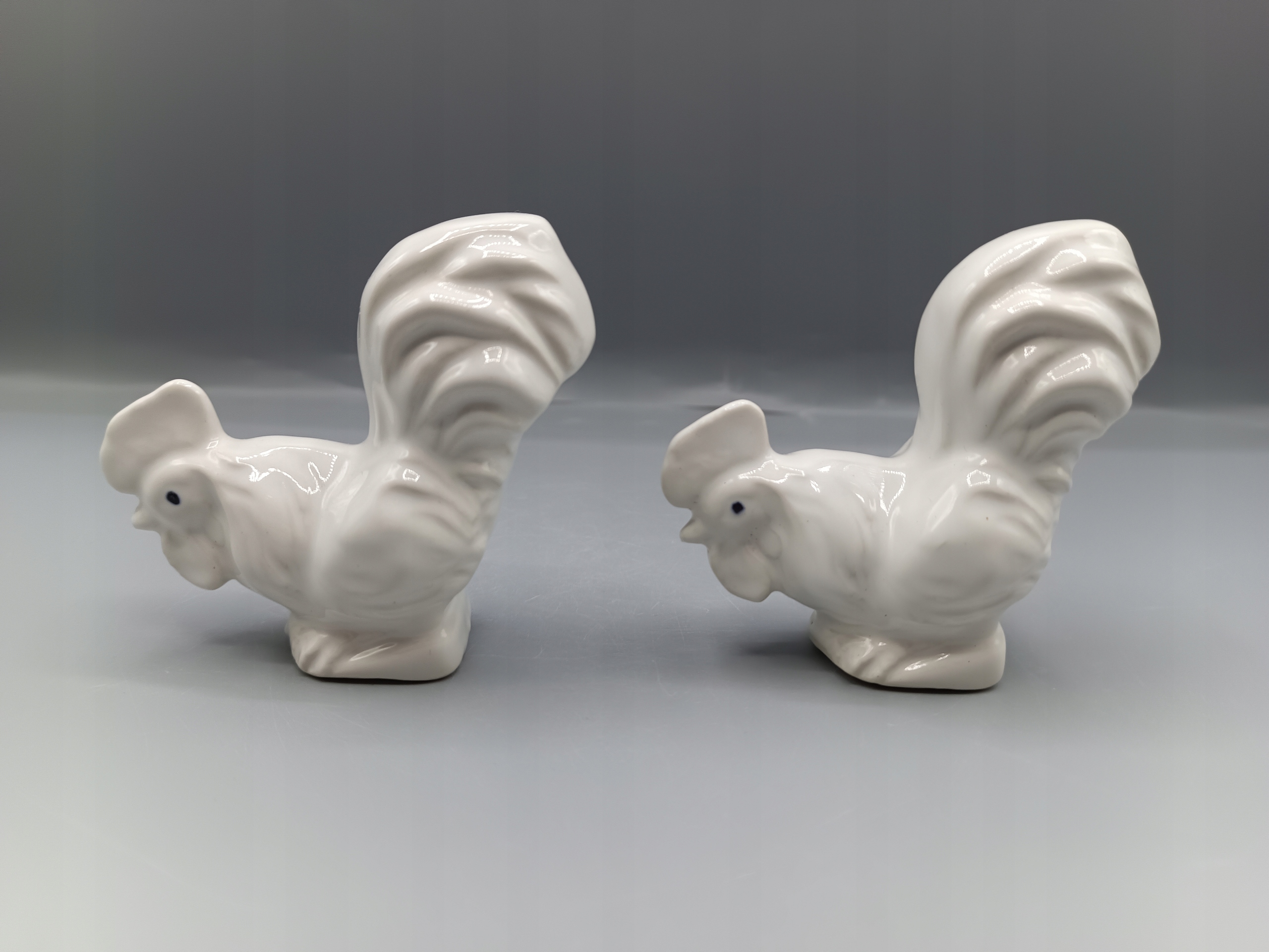 два (2) белые петухиеру из фарфора - фигурки коллекционера - 7,5 см