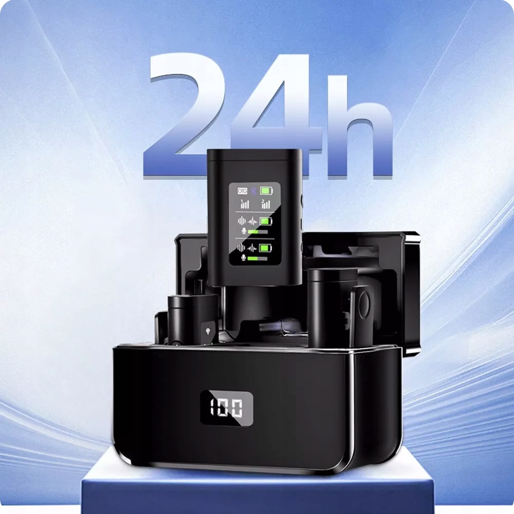 ✔️ ДЛИТЕЛЬНОЕ ВРЕМЯ РАБОТЫ: Аккумулятор емкостью 120 мАч обеспечивает до 6 часов работы. Микрофоны и ресивер можно заряжать через чехол со встроенным блоком питания.