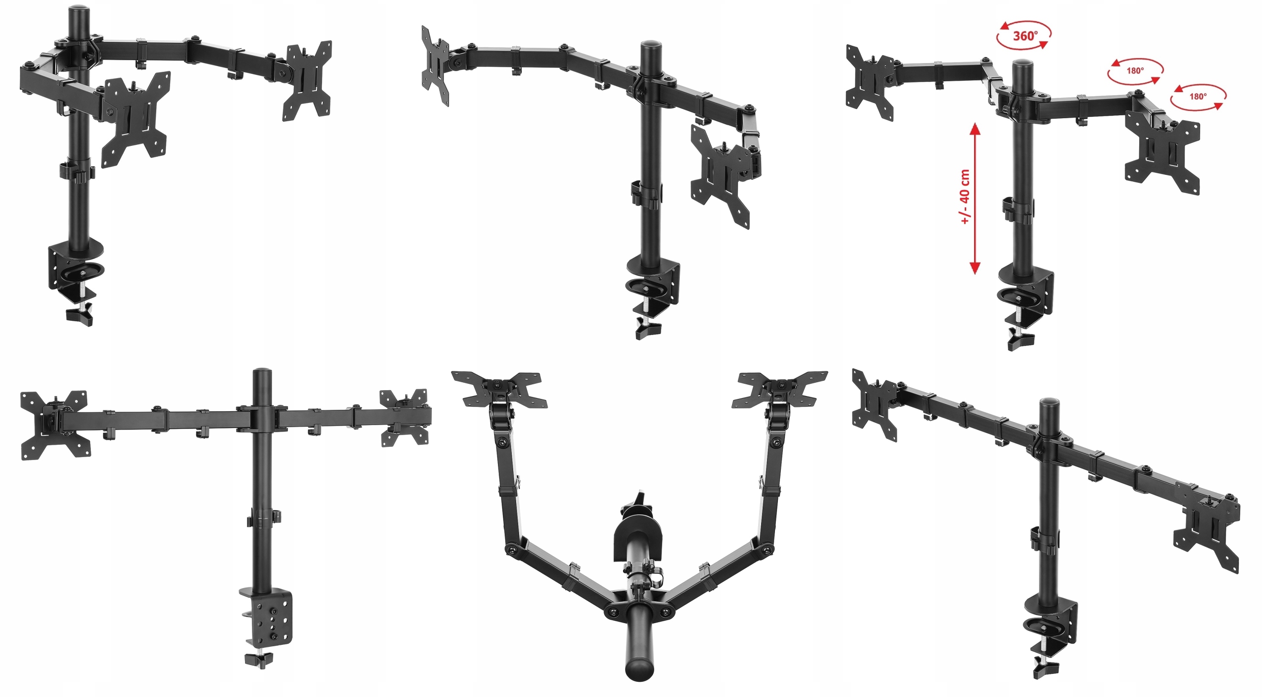 Мониторы, удерживающие руки, имеют правила торговли в 3 точках: 1 - 180 ° , 2 - 240 ° , 3 - 240 °