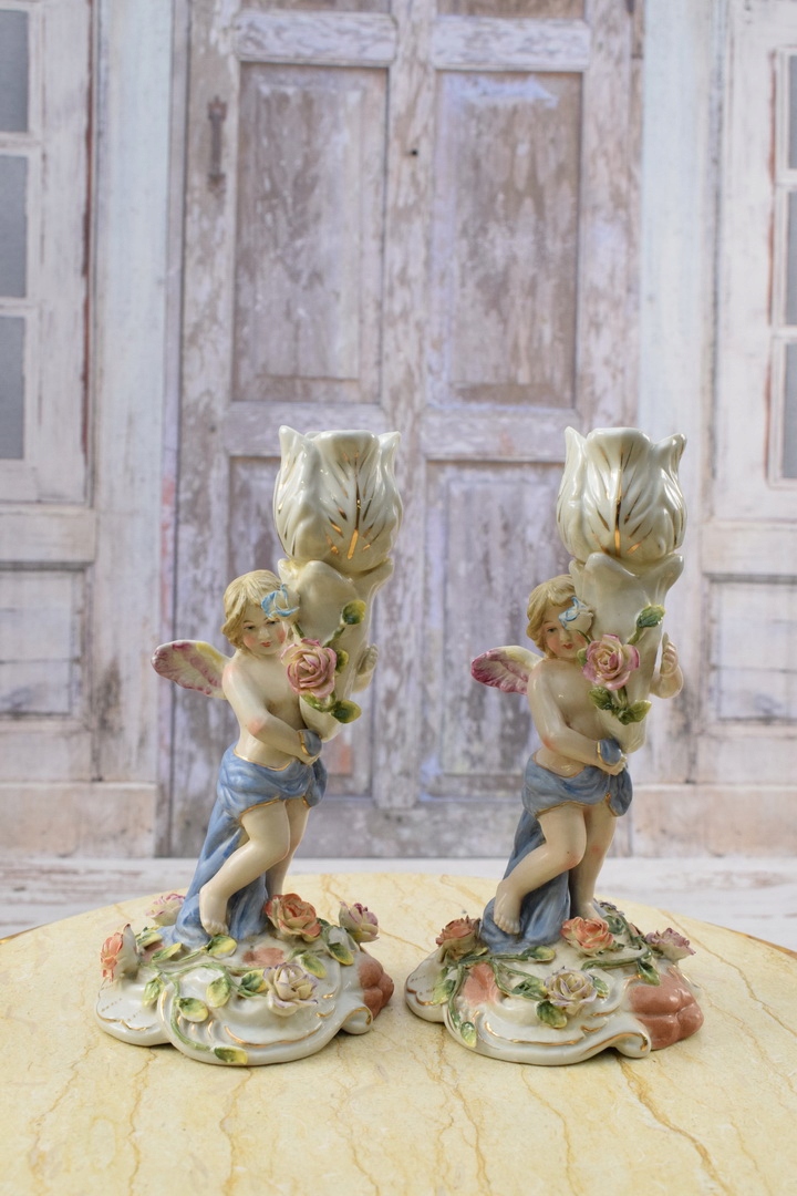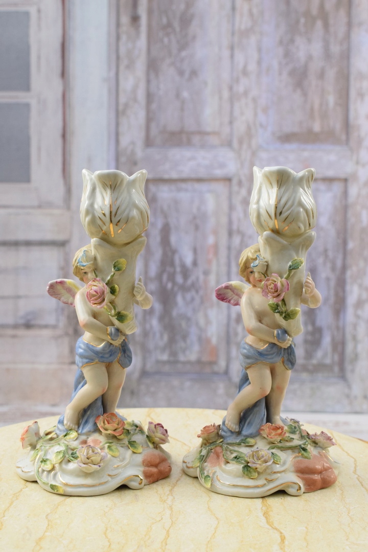 Два фігурних порцелянових свічника - фарфор + пара ангелів