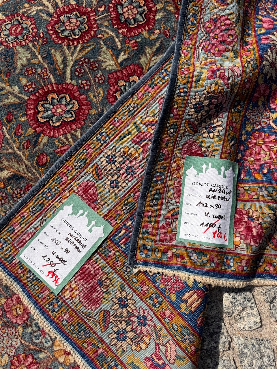 Предмет: Два оригинальных персидских ковра ручной работы из Кирмана. провинция вблизи провинции Кешан. Имеется бирка под ковриком + бумажный сертификат по запросу. В галерее до продажи один стоил 1250 евро, или около 6000 злотых.