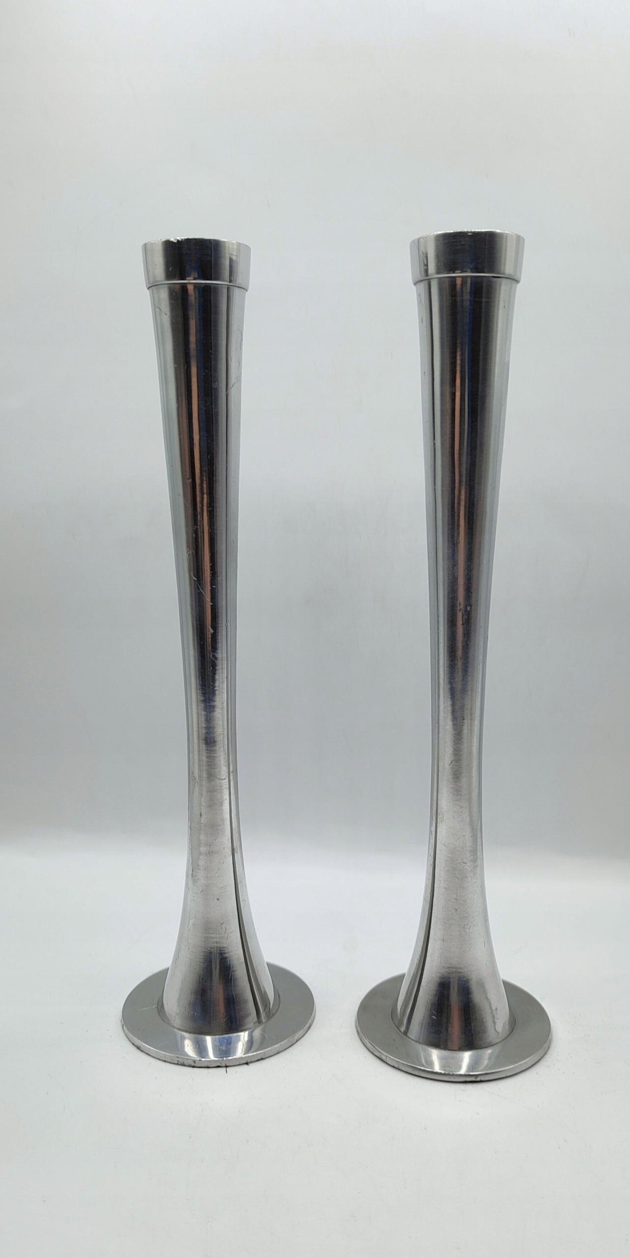 Два стройных подсвечника Стильные алюминиевые свечи 27 см.