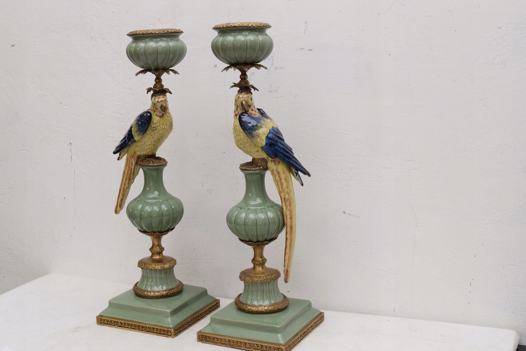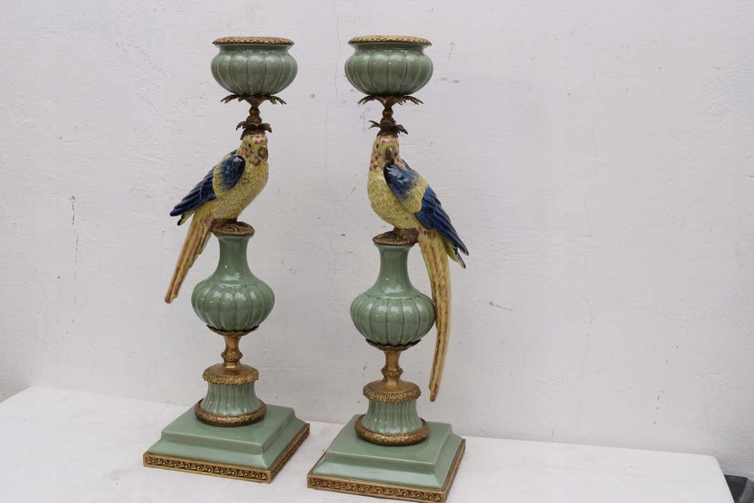 Здравствуйте, сегодня я хотела бы предложить Вам 2 подсвечника ПОПУГАЙКИ из фарфора и подсвечник и украшения из бронзы.