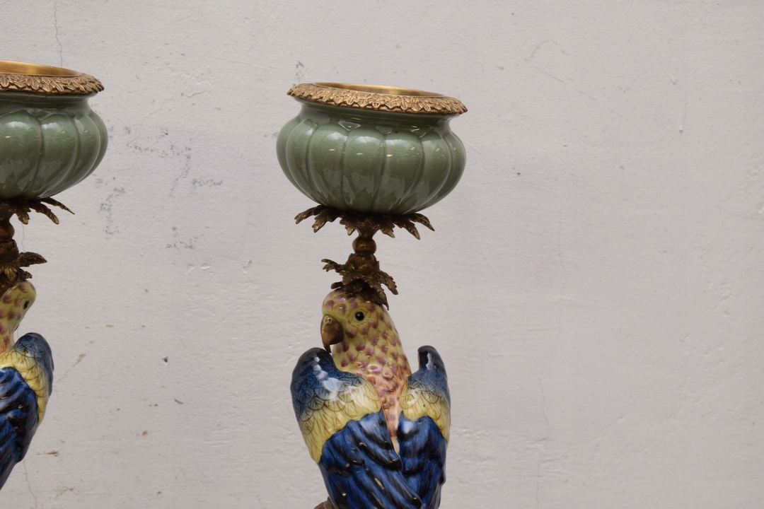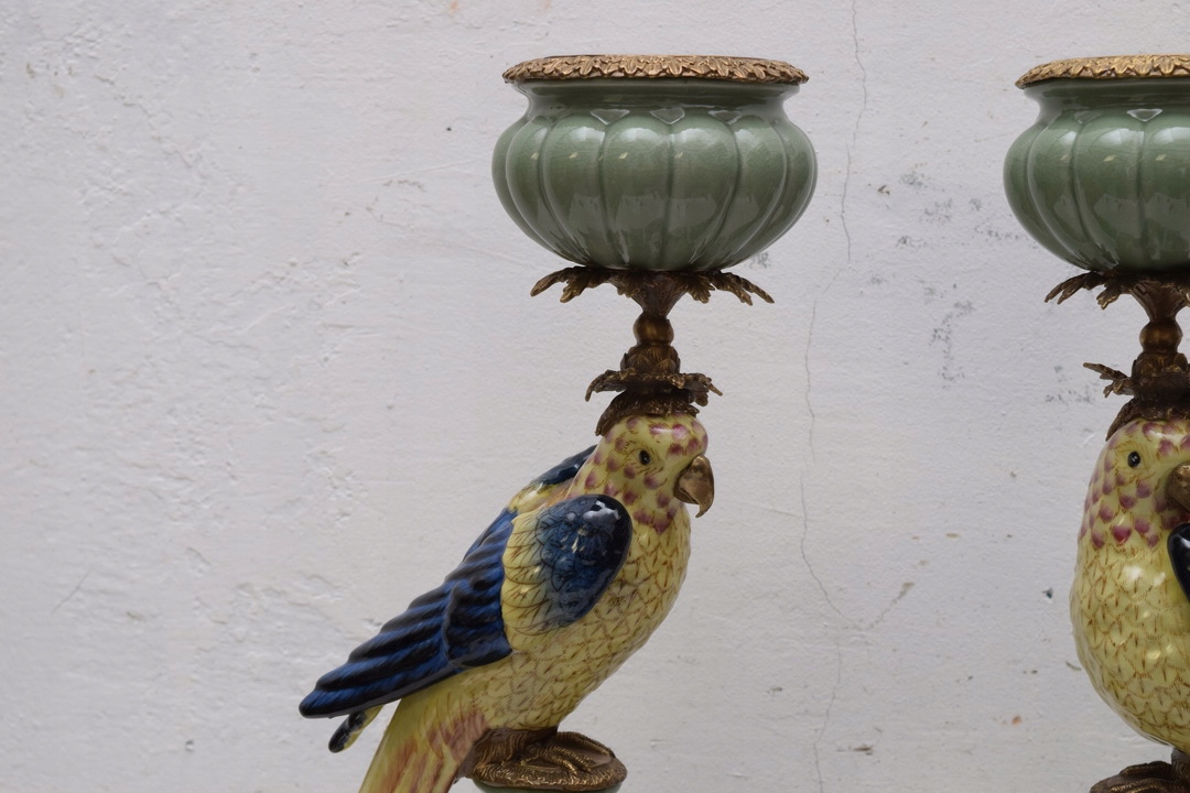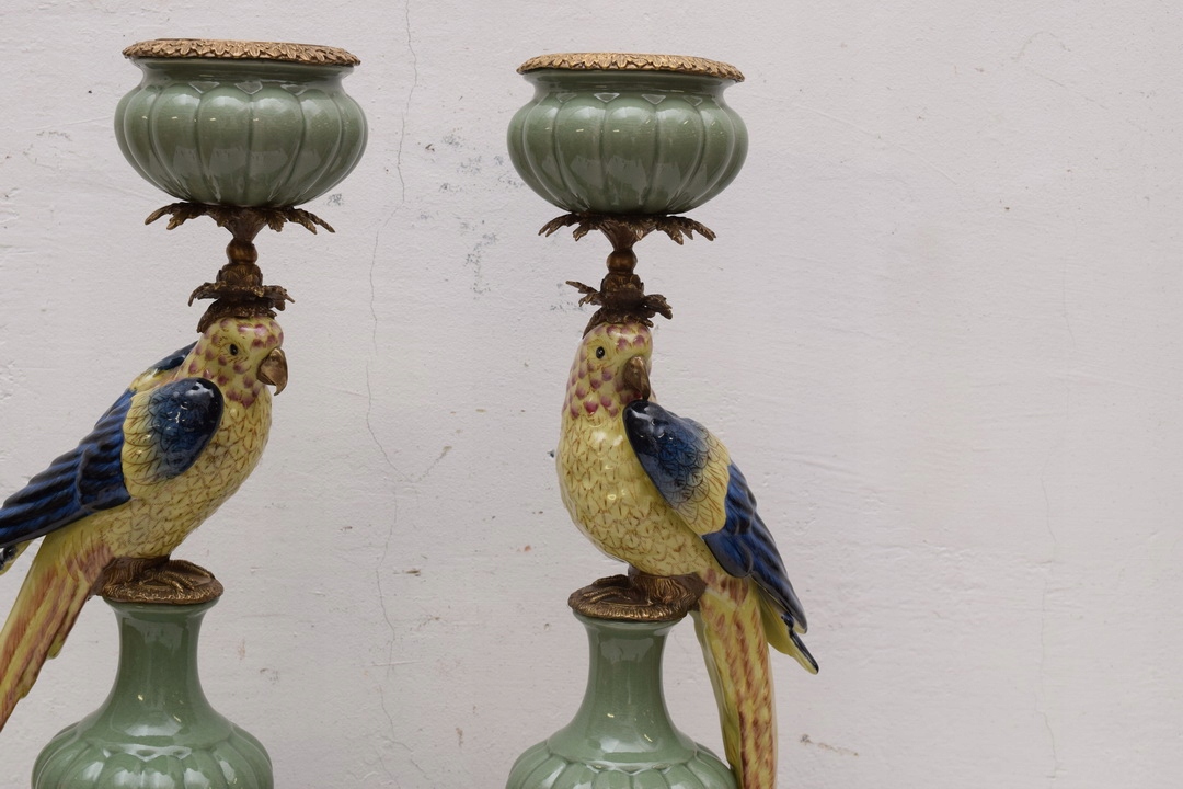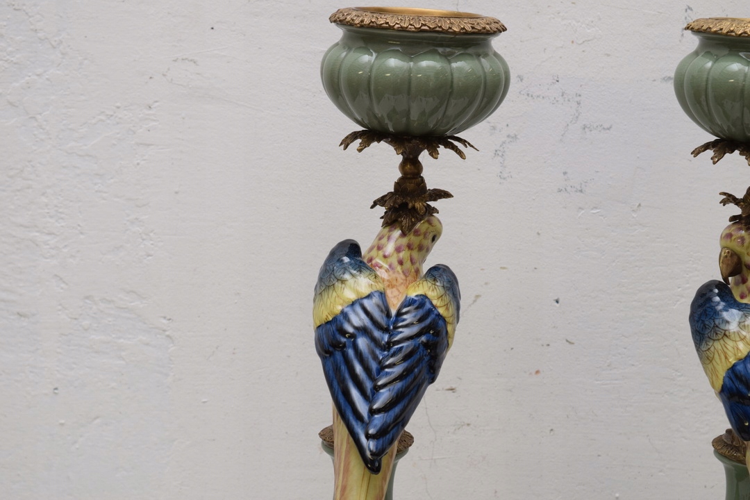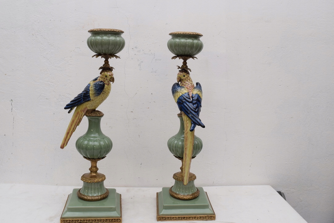 ДВА СВИЧНИКИ - Папуги - ПАРЦЕЛЯНОВИЙ ТА КОРИЧНЕВИЙ 85см