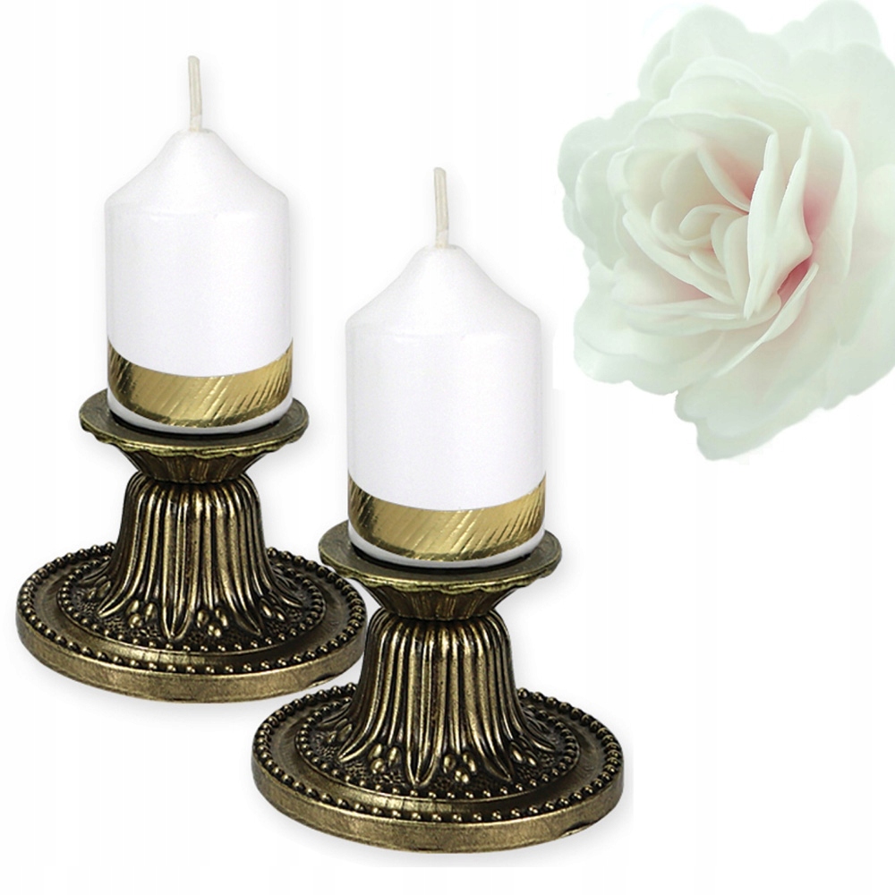 - Два красиво декорированных подсвечника из металла цвета латуни;
