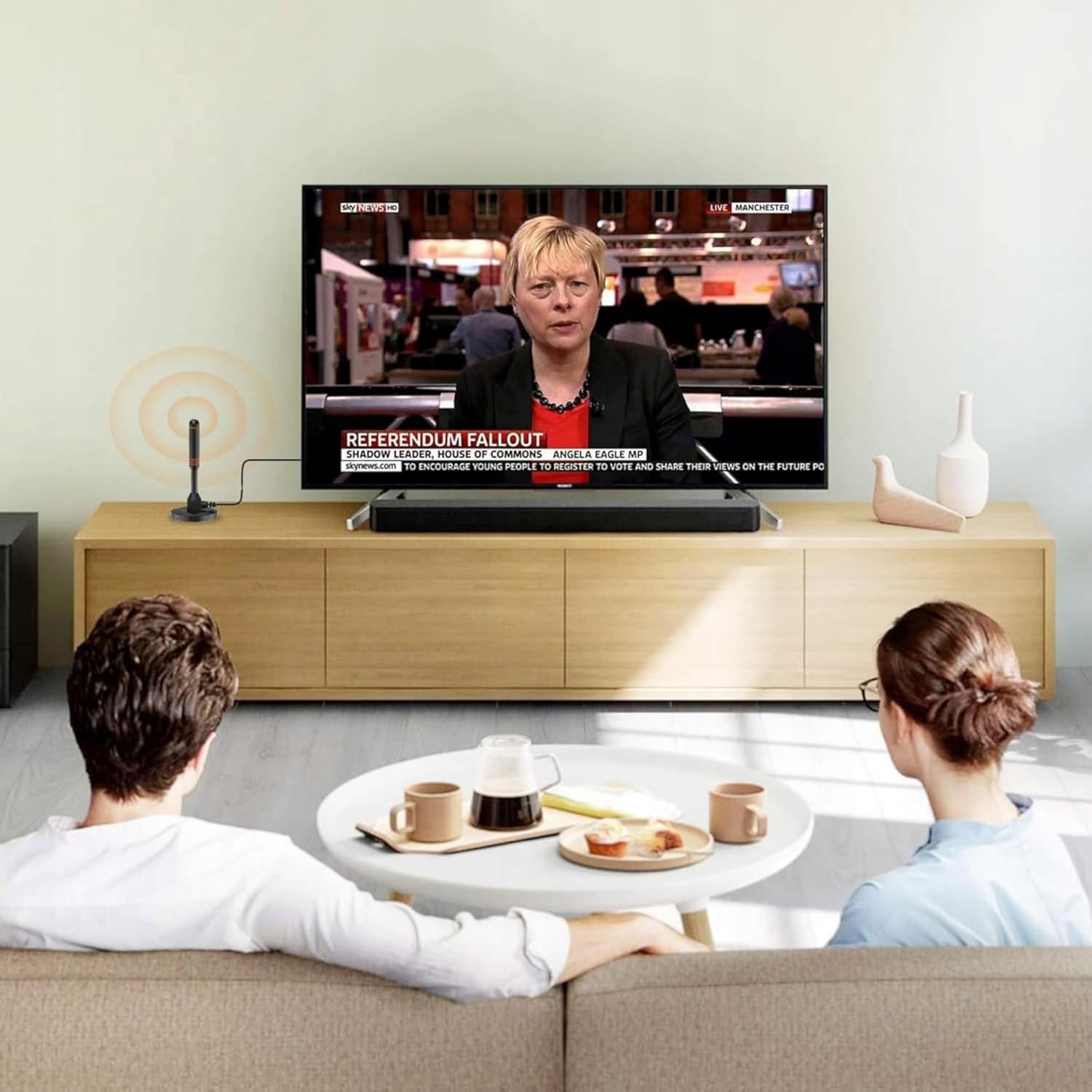 Просто поместите его рядом с телевизором или прикрепите к стене, чтобы найти оптимальную позицию антенны для лучшего приема.
