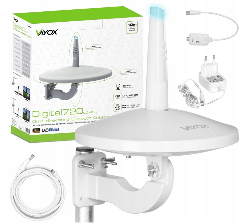 Dookolne Antenna Model 720combo адаптирована к каналам dvb-t2 качества 4K.