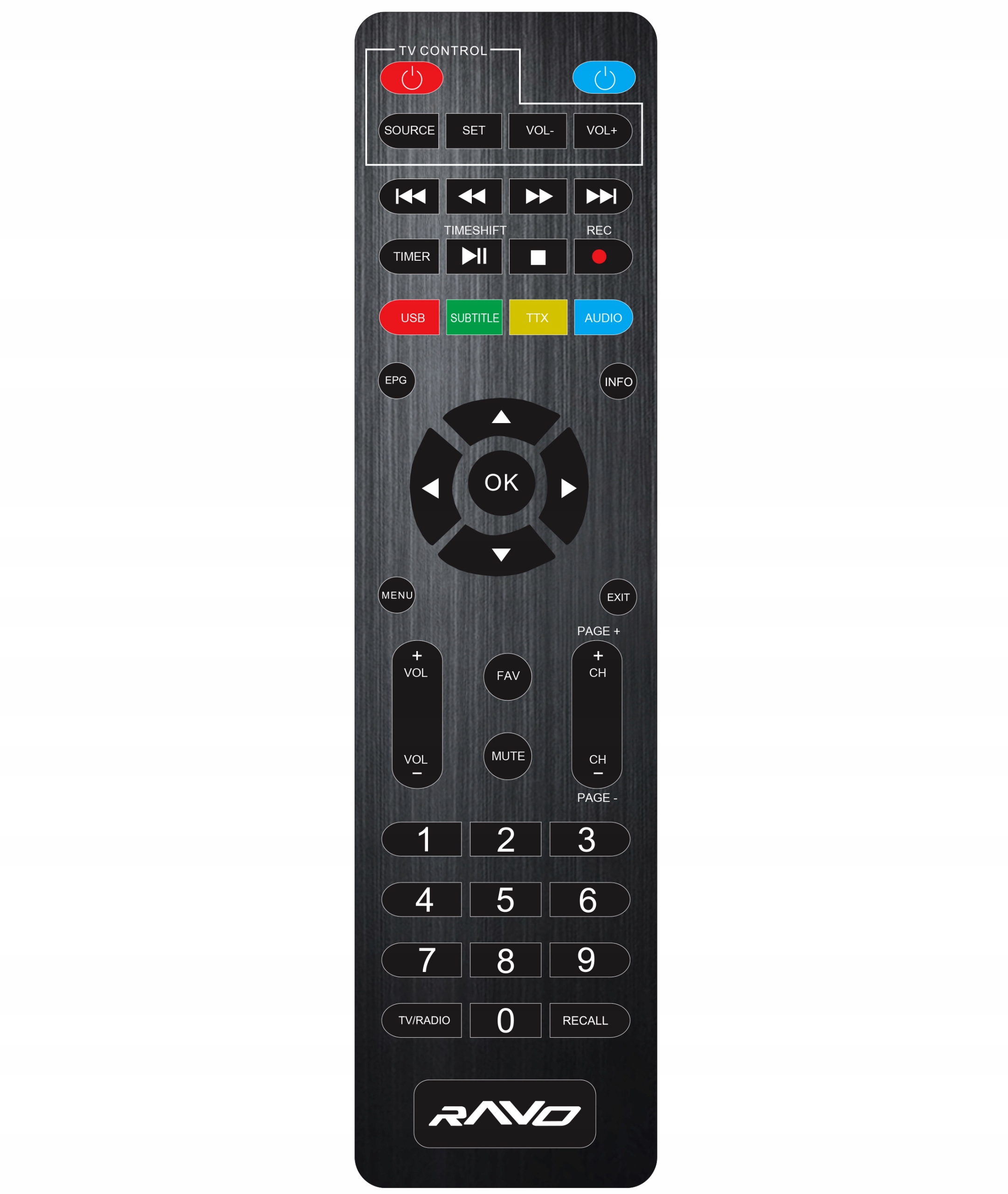 HD RAVO HD202 HEVC ТЮНЕР для цифрового наземного телевидения DVB-T2 и кабельного телевидения с USB WIFI-антенной с пультом дистанционного управления с функцией программирования с 4 кнопками.