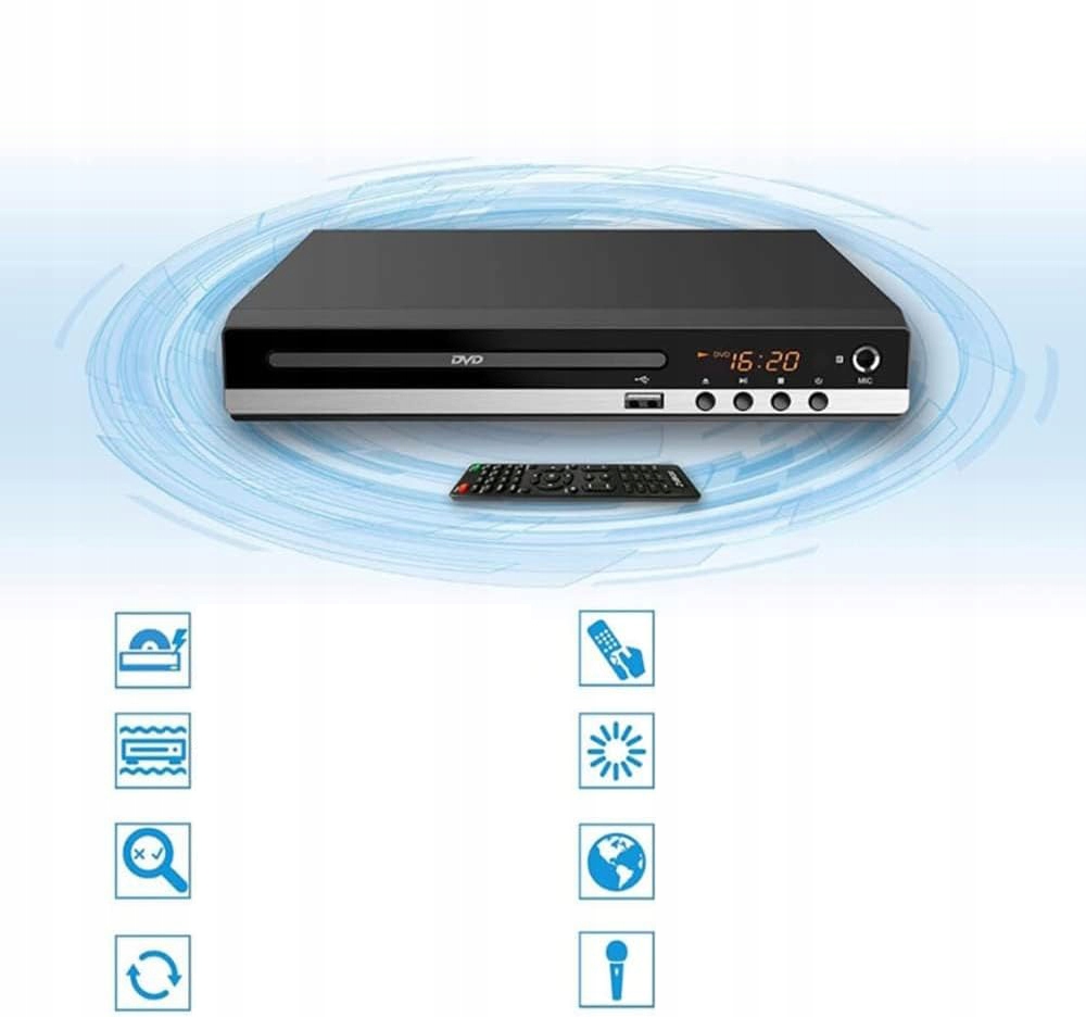 - Благодаря тонкому и компактному дизайну его можно легко разместить, не занимая много места. Высококачественный пластик делает DVD-плеер достаточно надежным и долговечным, чтобы выдерживать повседневное использование.