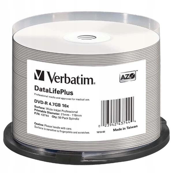 Verbatim DVD-R DataLifePlus Inkjet Диски для печати на тортах, 50 шт.