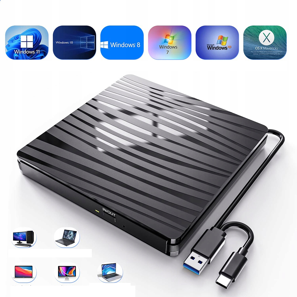 wide operation of laptops, PCs, laptops, desktop computers, Windows XP/2003/Vista/Win 7/8/10/11/Mac 10 Compact Disc: DVD-ROM 、 DVD-Video 、 CD-R/RW 、 CD-ROM/XA 、 CD-ROM 、 CD-EXTRA 、 CD-TEXT