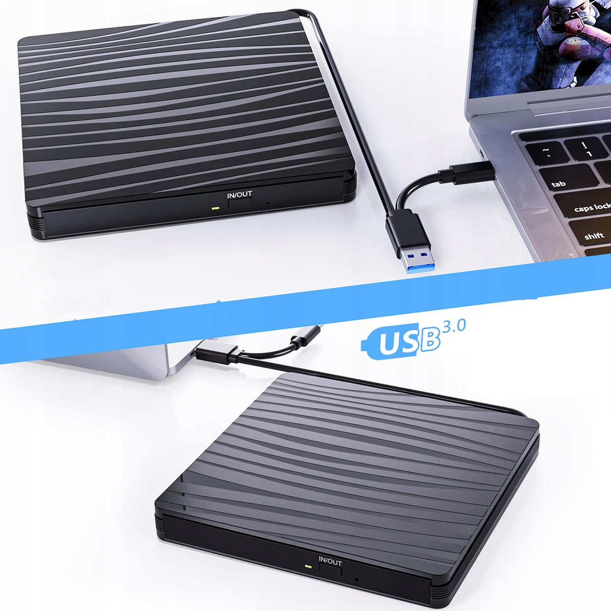 Внешний диск USB 3.0 DVD Drive поддерживает MacBook, ПК и ноутбуки. Вы можете смотреть фильмы, играть в игры, слушать музыку. Вы также можете копировать файлы, фильмы на CDS/DVD, установить программное обеспечение, создавать резервные копии и т. Д. Внешний оптический диск не работает с Chrome OS и Chromebook Systems.
