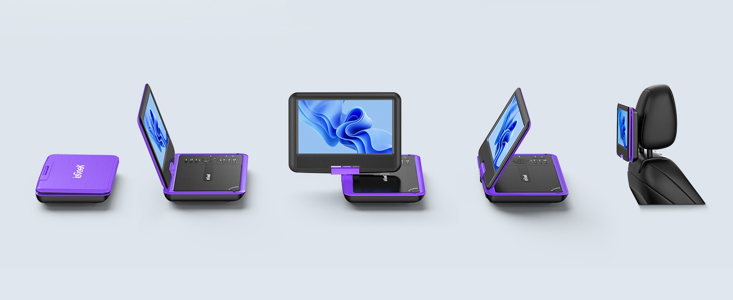 Компактный конструкция облегчает передачу. DVD -плеер IEGEEK можно легко вращать, как планшет, и накапливается на подголовке автомобиля.