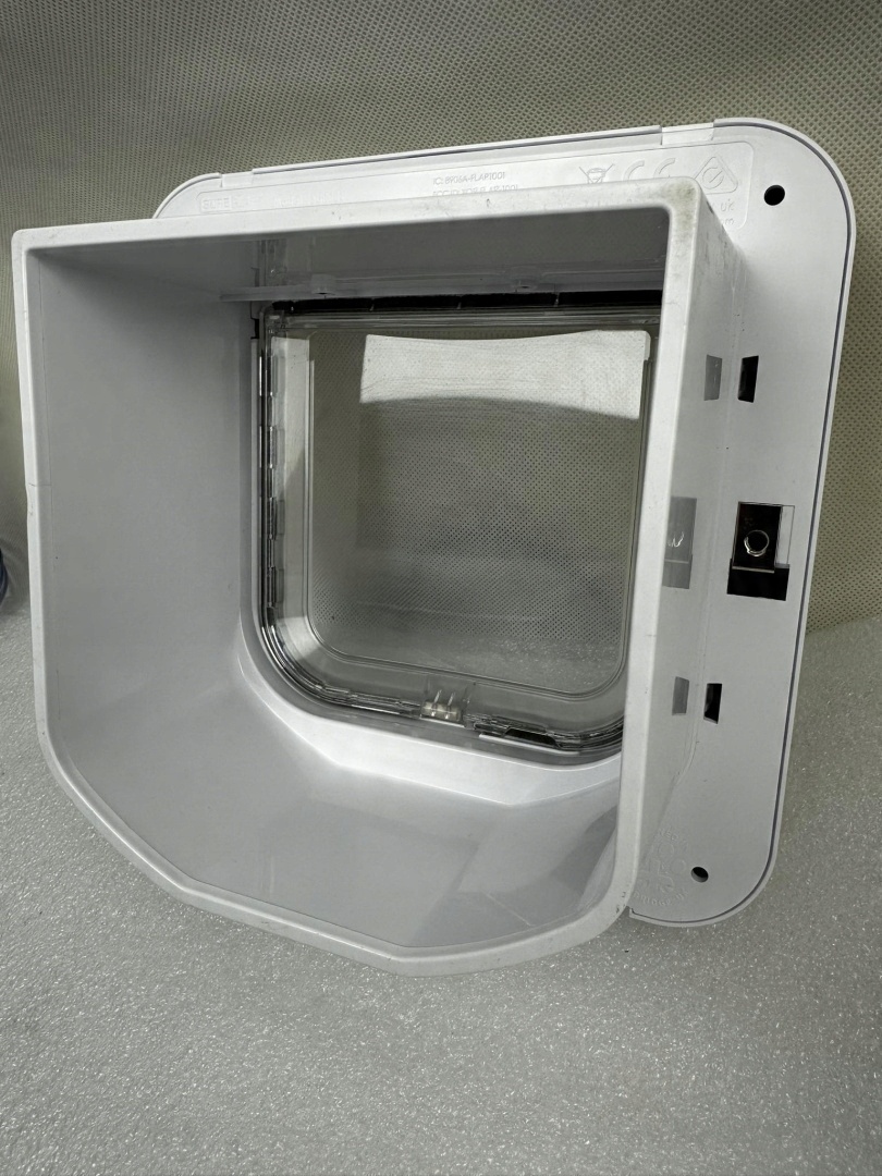 Створка имеет стандартный размер и легко вписывается в существующие вырезы ранее использовавшихся створок для кошек в дверях и стенах. Для стеклянных дверей требуется отдельный адаптер.