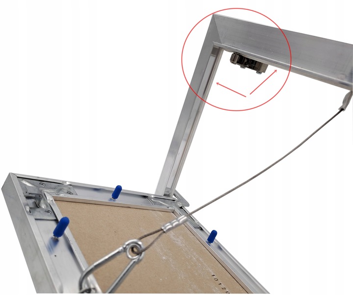 Для большей безопасности люк оснащен страховочным тросом, который крепится на раме и предотвращает выпадение пластины. Защитный трос особенно полезен, когда досмотр крепится на потолке.