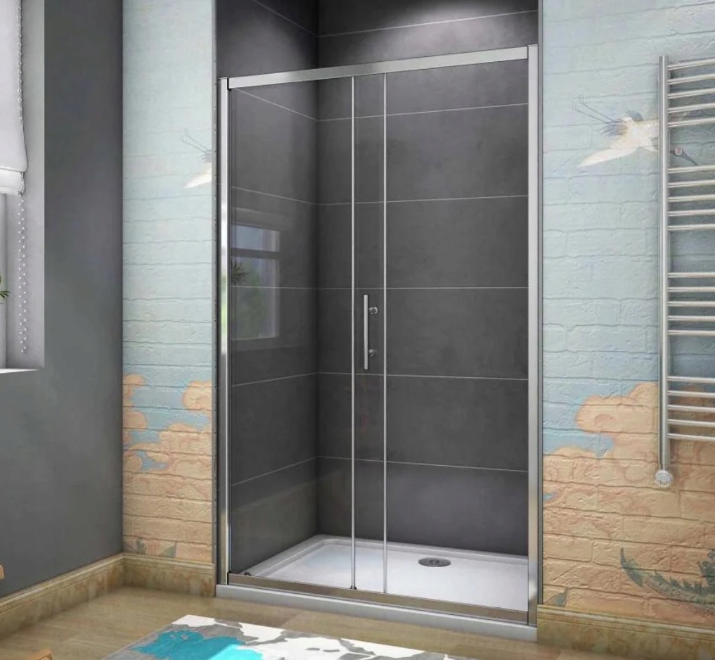 Качественные душевые двери раздвижного типа из закаленного прозрачного стекла толщиной 6 мм, алюминиевые профили, ручка открывания и ролики - отделка хром. Душевые двери можно установить на душевой поддон или непосредственно на пол. В этих душевых дверях используется система ходовых роликов с возможностью легкого и быстрого снятия ходового стекла (например, для очистки поверхности изделия). Душевые двери предназначены для установки в нишу, с увеличенной высотой до 195 см. Возможность регулировки ширины душевой двери до меньших размеров до 50 мм! Профили следует укоротить самостоятельно (направляющие, по которым движутся ролики, обрезав их на любую длину).