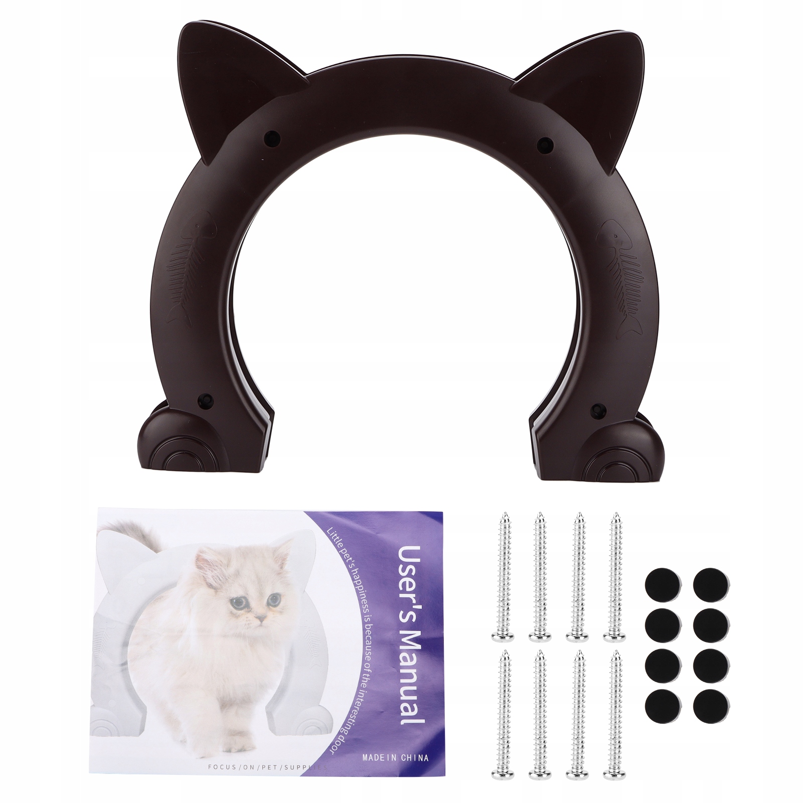 Функция: 1. Барьерный дизайн дверей животных позволяет животным легко входить и покинуть комнату без помощи. Очаровательная дверь в форме кошки не позволяет кошкам поцарапать дверь, когда никто не дома и не может войти в комнату. Двери кошек подходят для домашних дверей любого размера и могут быть адаптированы к толщине двери. Используйте винты для установки, избегайте выпадения и зазоров, вызванных установкой ленты и без шума, когда кошка проходит. Двери кошек изготовлены из ABS, устойчивы к износу и долговечны. Край свободны от заусенцев, чтобы защитить кошку от царапин. Дверь для собачьей кошки. Дверь для собачьей кошки.