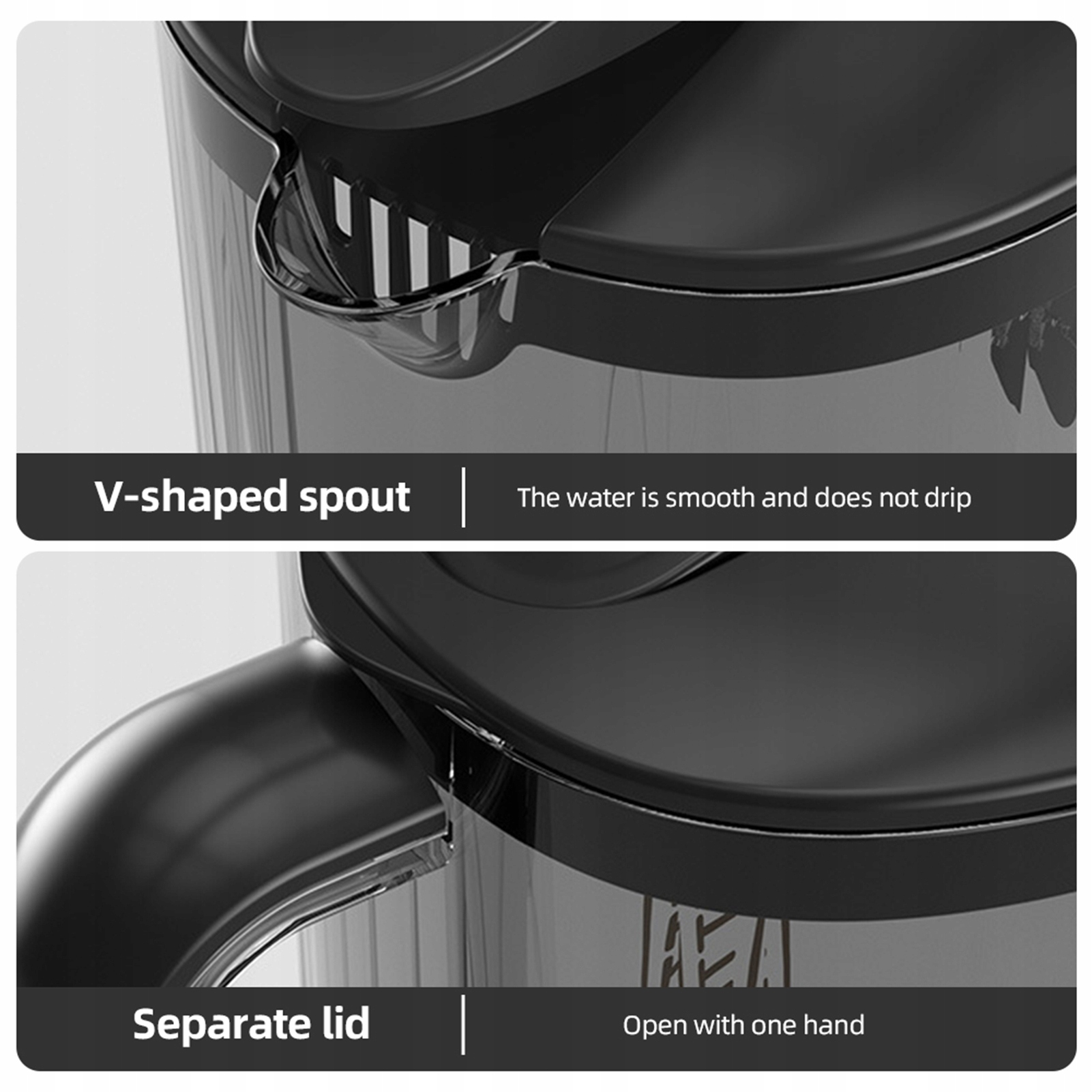 1. 【Кувшин для воды с крышкой】-этот кувшин для воды имеет V-образный носик, позволяющий легко наливать воду и предотвращать утечки. Крышка сверху гарантирует, что напиток останется свежим и свободным от внешних загрязнений. Если вы подаете холодную воду или другие напитки, этот кувшин станет вашим идеальным помощником.