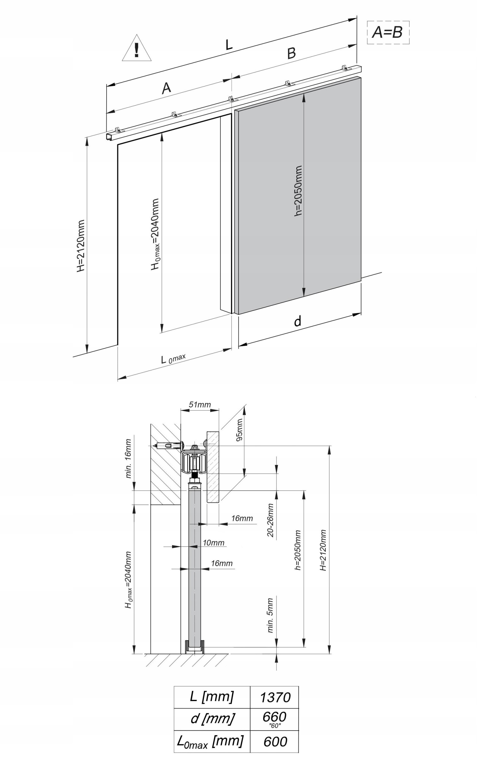 Настенные раздвижные двери BELLO – технический чертеж