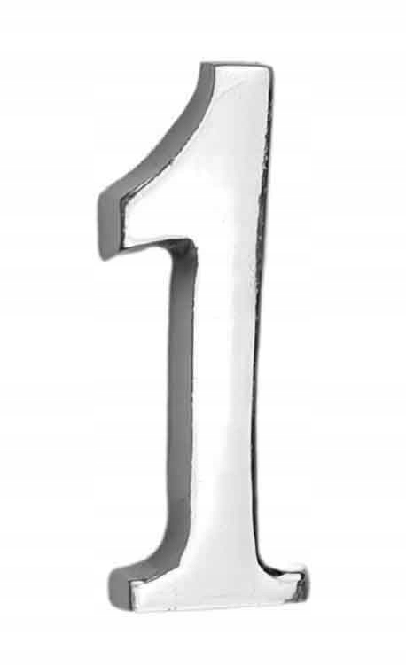 Цифра 1 для дверей, 45 мм, хром, самоклеящаяся